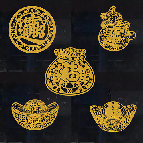 📚 新年节日金色元宝 财字剪纸玻璃门贴窗花贴纸喜庆春节福字