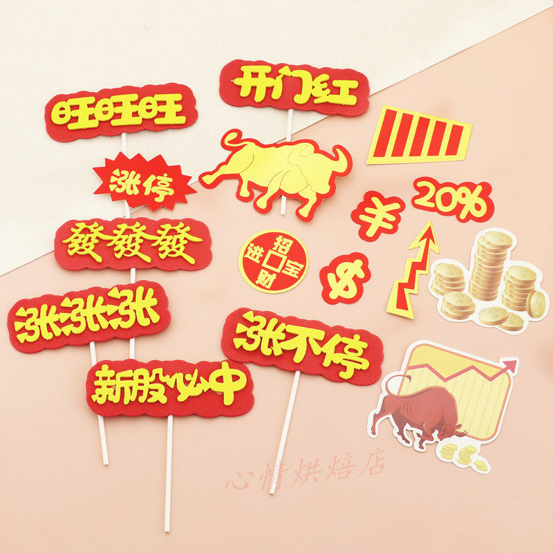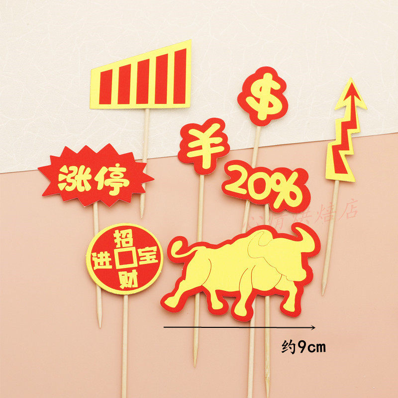 📚 牛市涨停蛋糕装饰插牌 烘焙生日股市插件 涨涨涨 发发发 新股必中