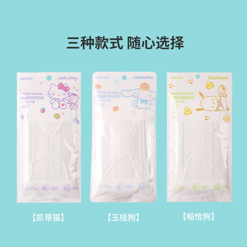 📚 MINISO名创优品三丽鸥压印一次性口罩可爱独立包装玉桂狗成人防护