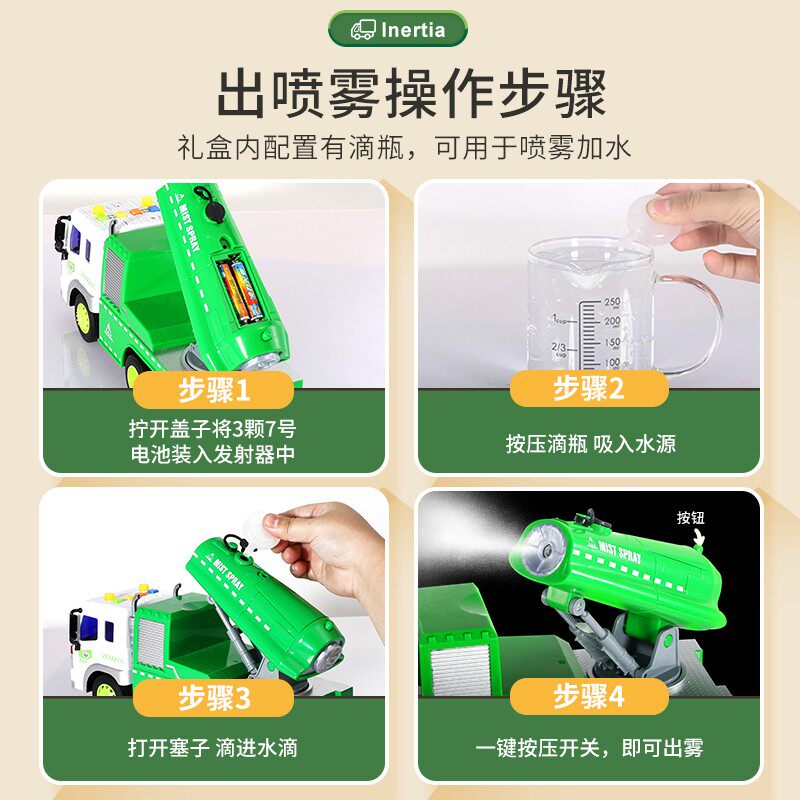 📚 城市喷雾车模型儿童洒水车小汽车玩具合金喷水车工程车男孩炮雾车