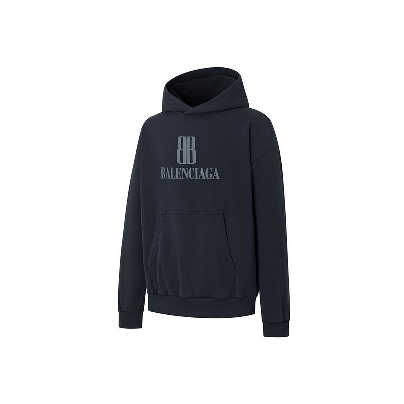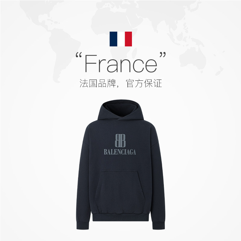 📚 【自营】Balenciaga/巴黎世家BB徽标长袖藏青色宽松男士连帽卫衣