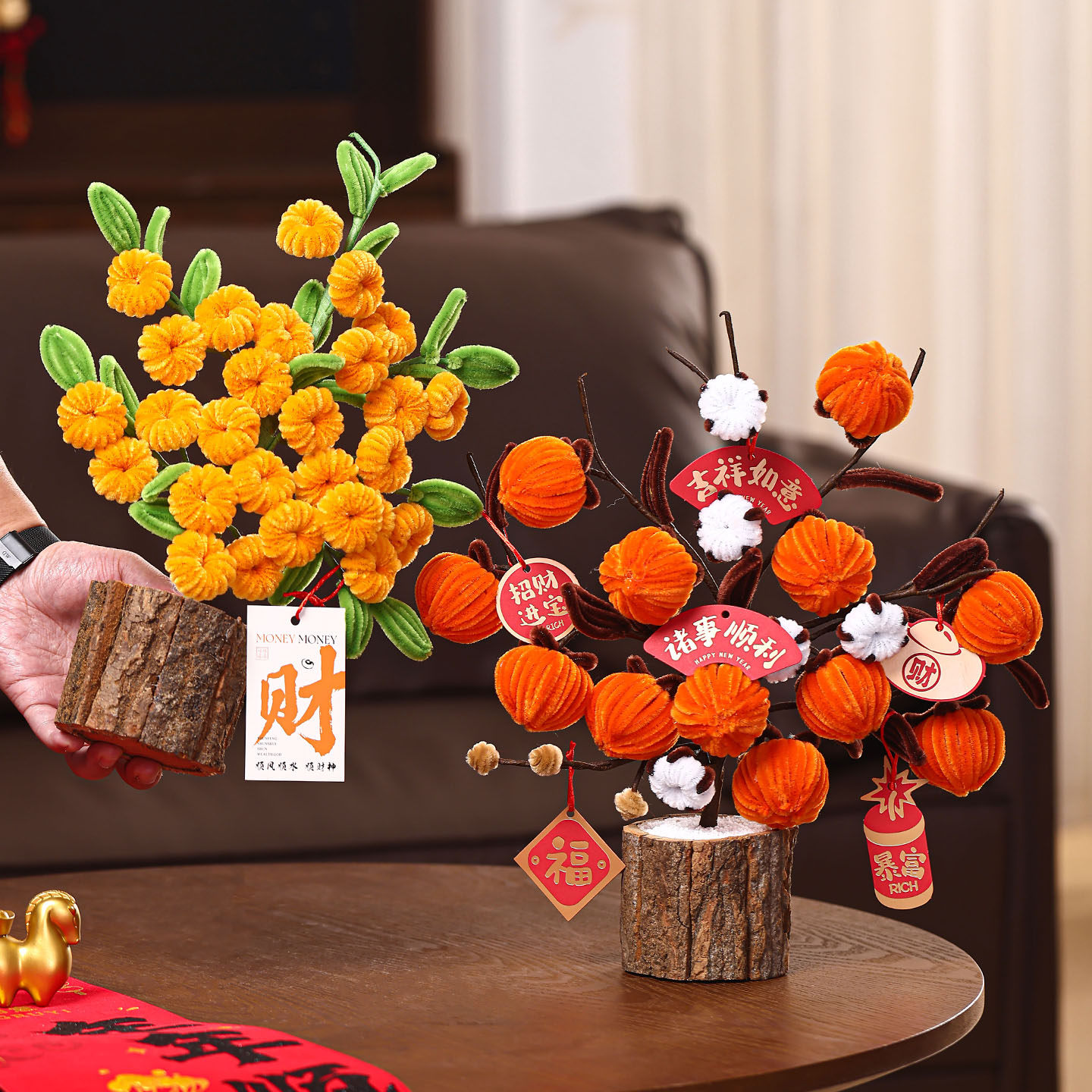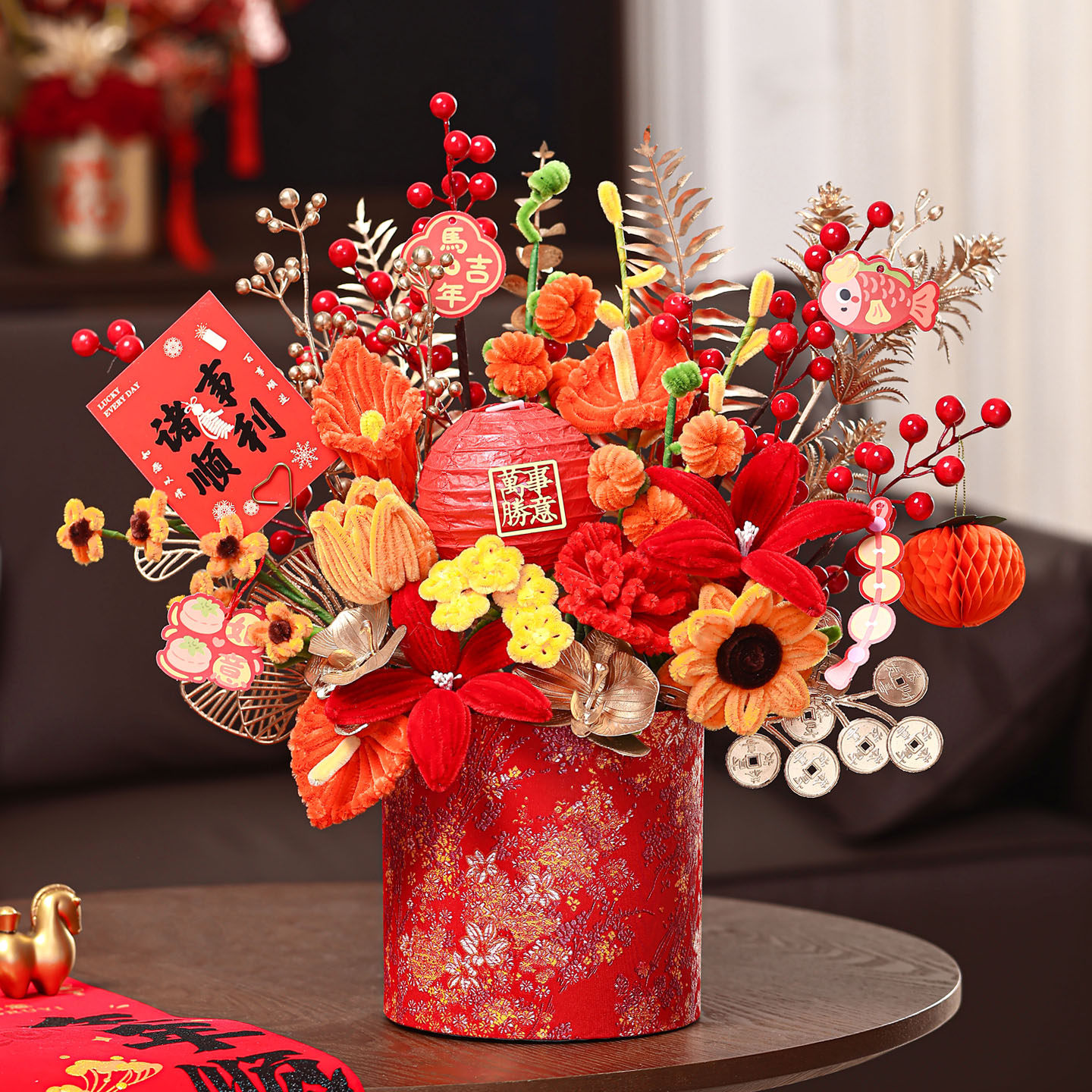 📚 装饰摆件花艺干花高档仿真花假花福桶年宵花新年元旦过年客厅布置