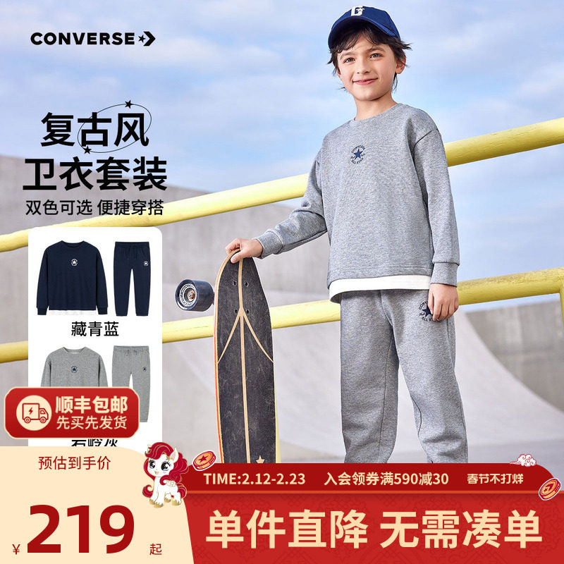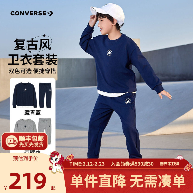 📚 匡威童装男童套装2026春季新款女童休闲两件套长袖T恤长裤运动服