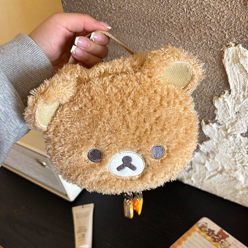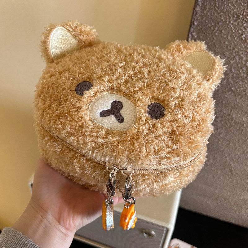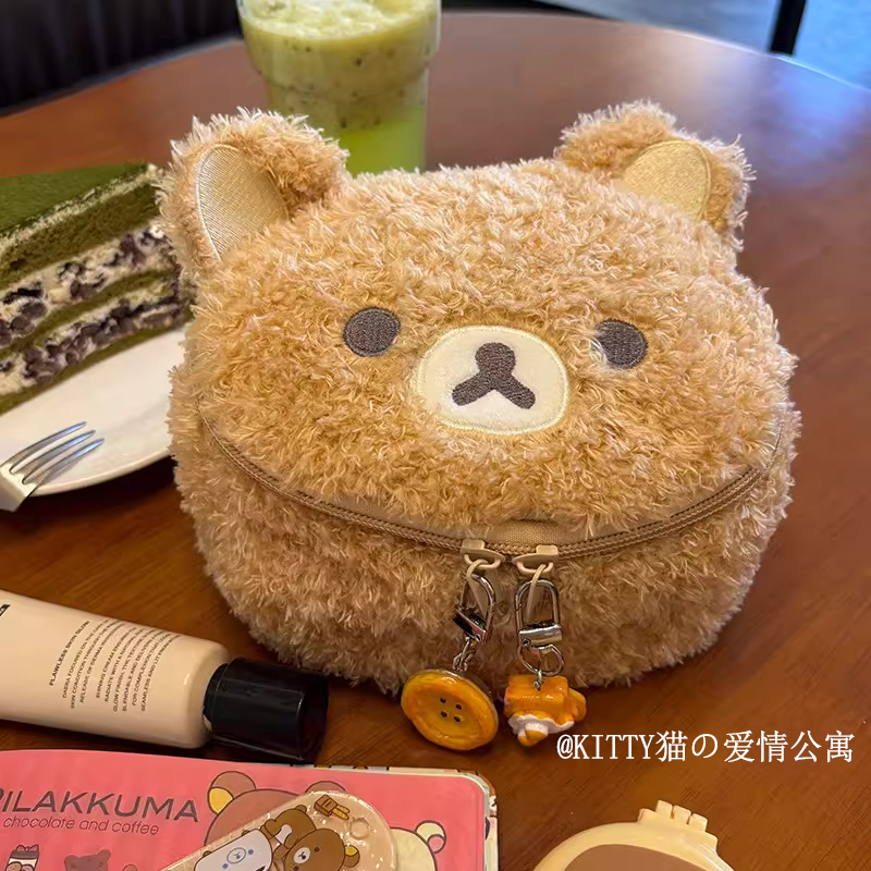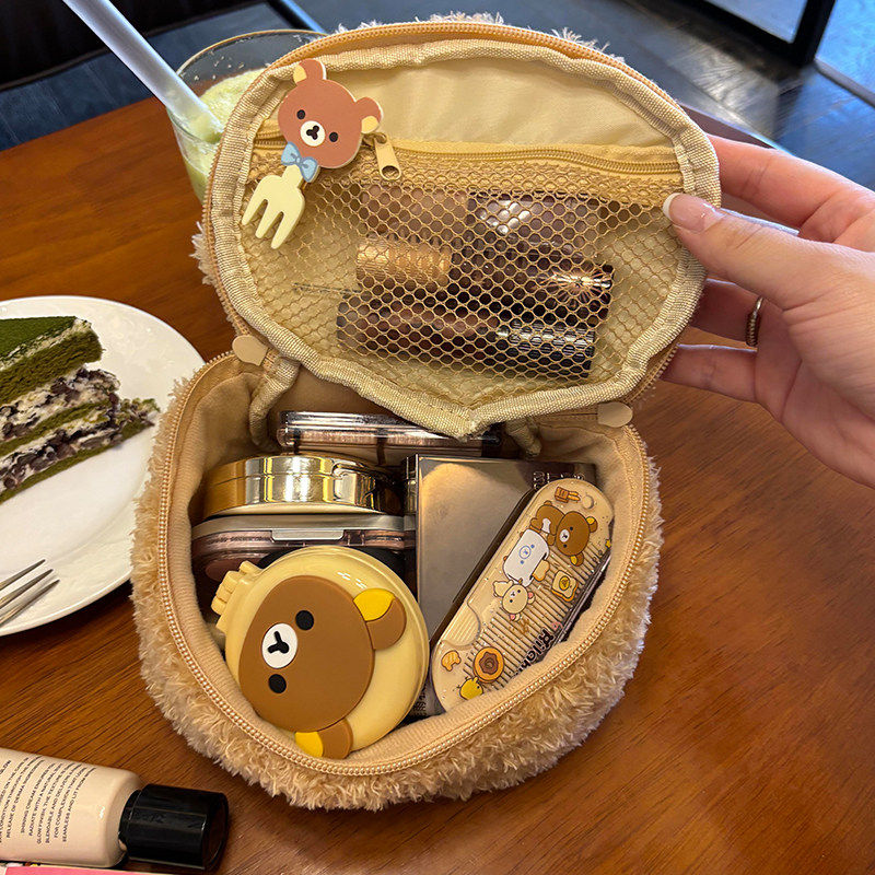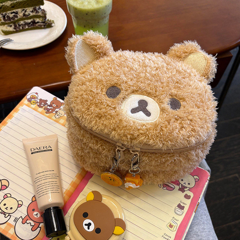 📚 日系轻松熊毛绒包化妆包便携可爱大容量洗漱包拍立得包ccd收纳包