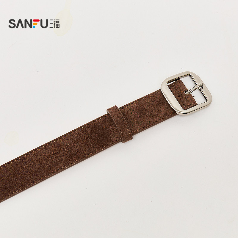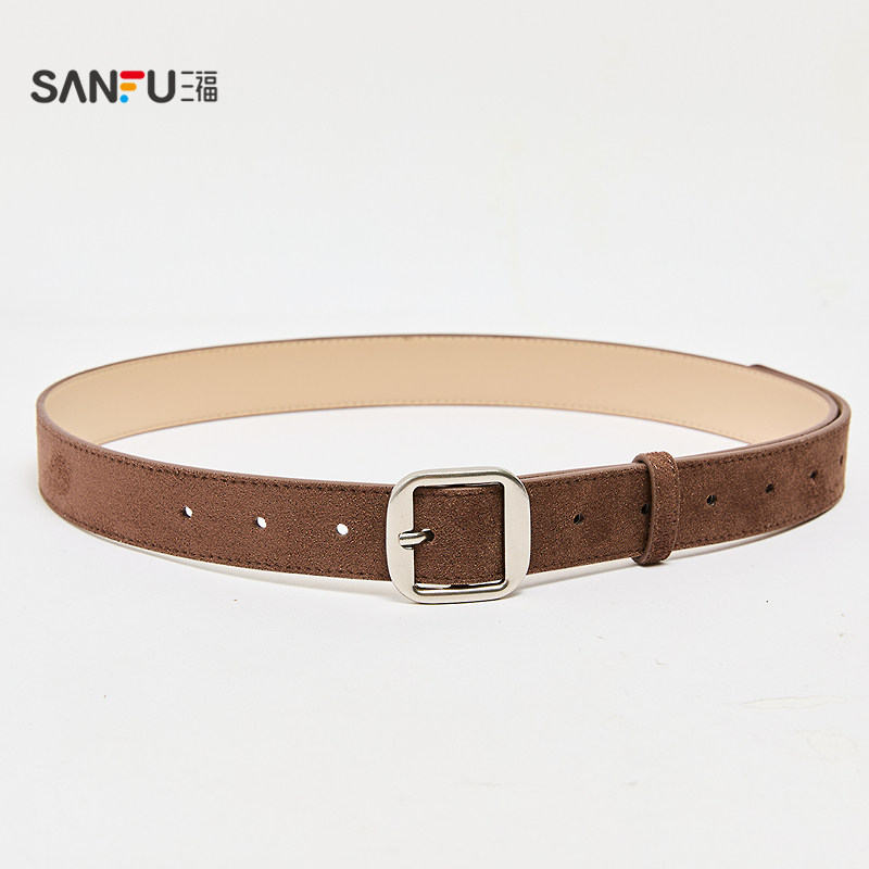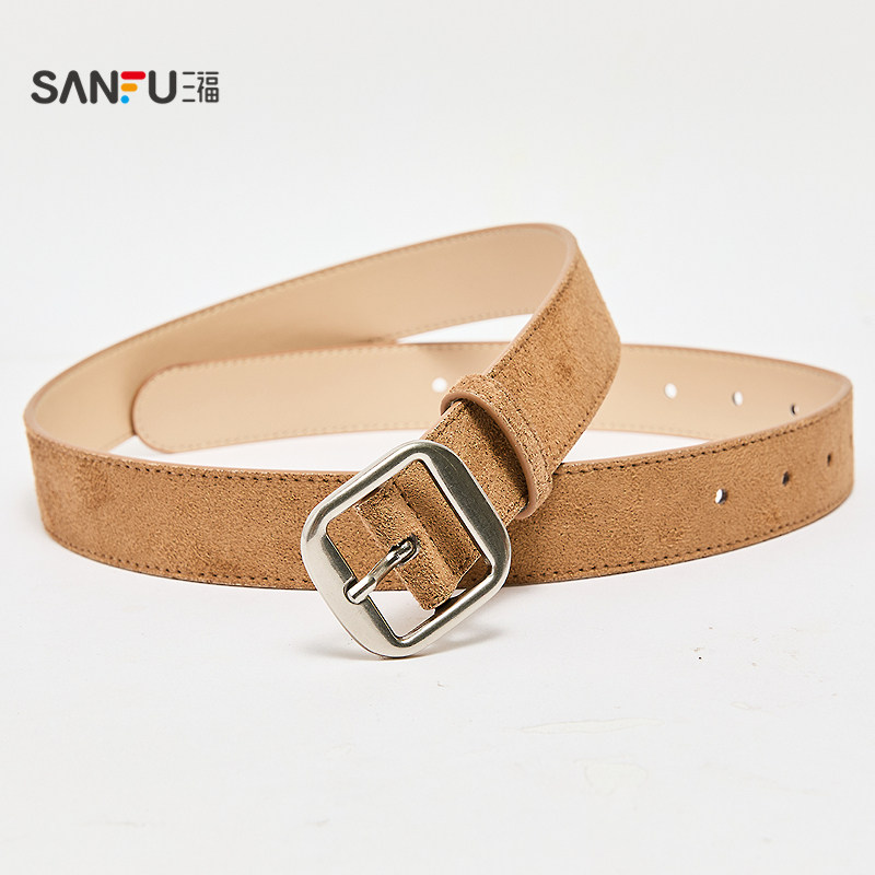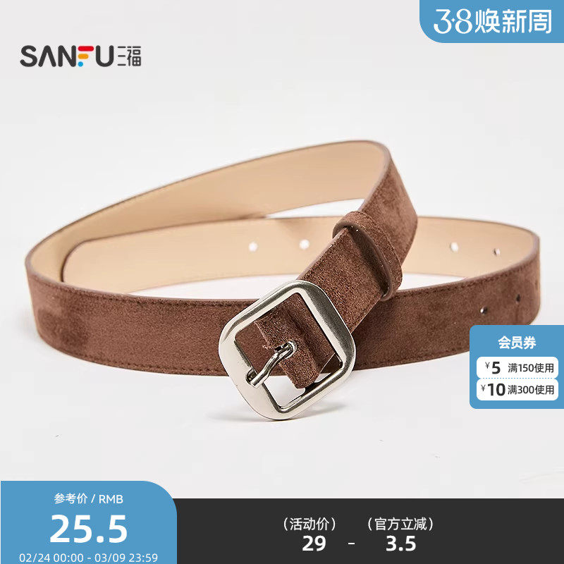 📚 三福女皮带2025经典游牧风日字扣皮带双车线包边腰带配饰512287