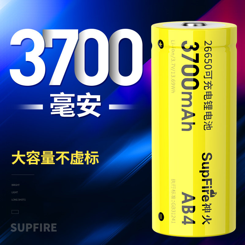 📚 SupFire原装神火26650充电锂电池3.7V超大容量3700强光手电筒专用