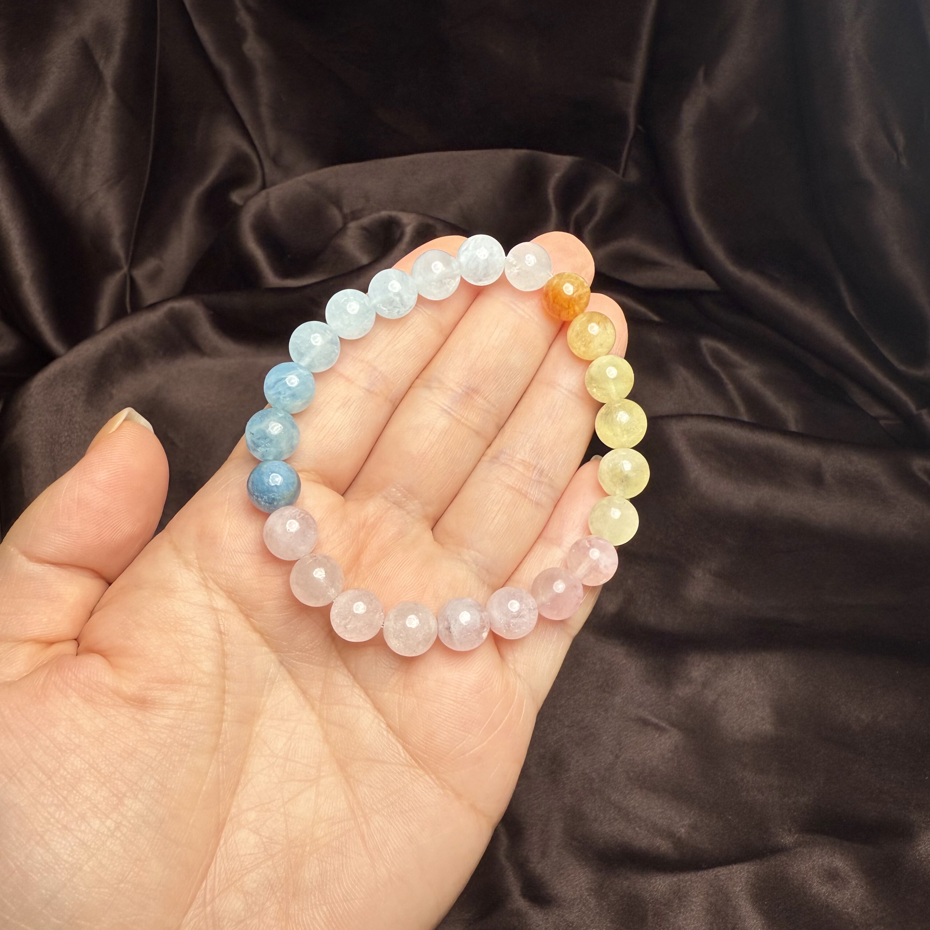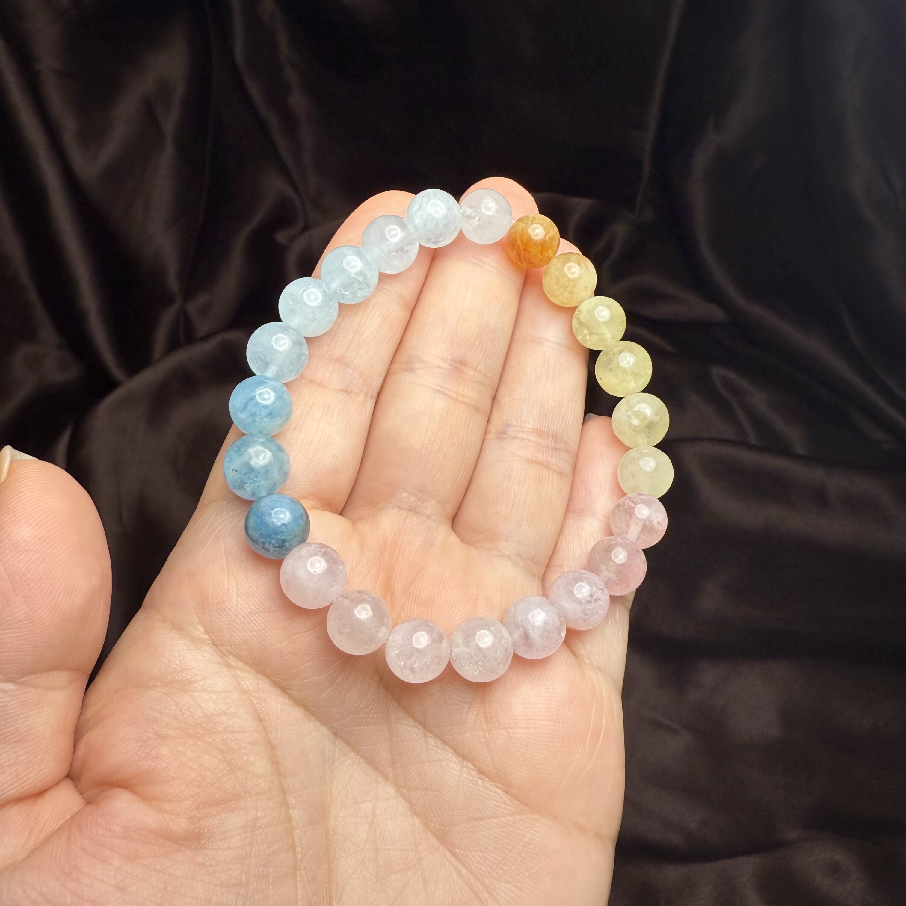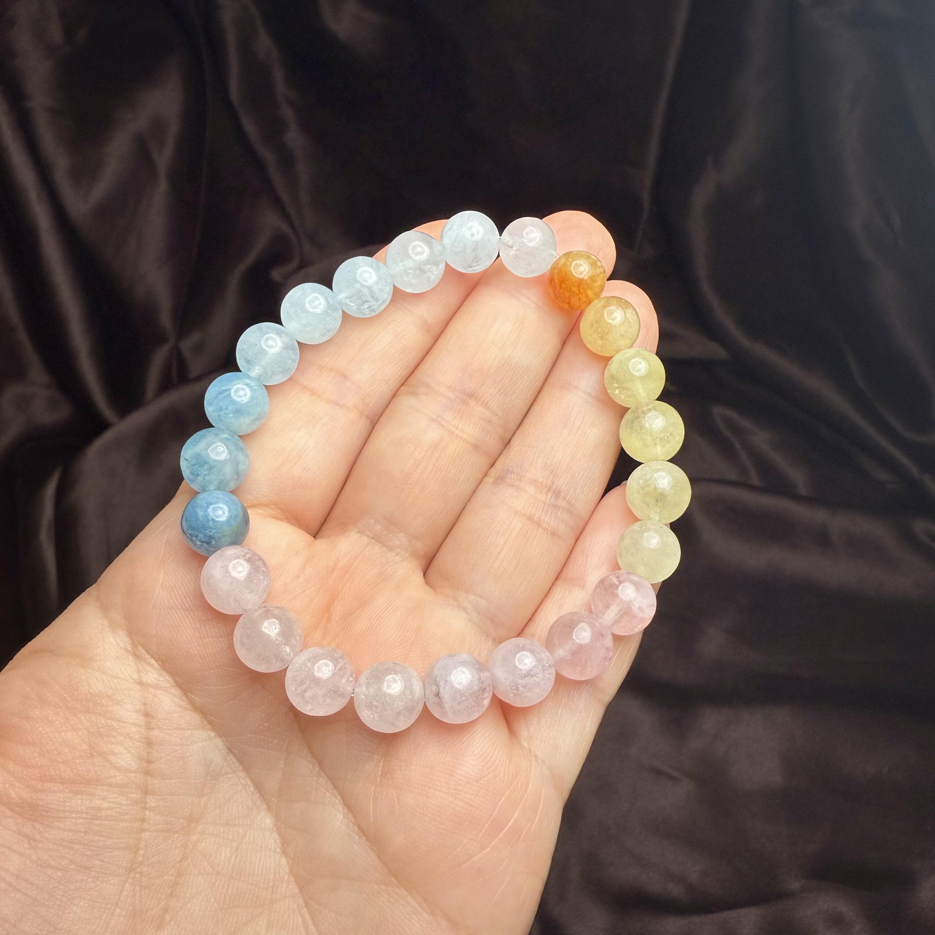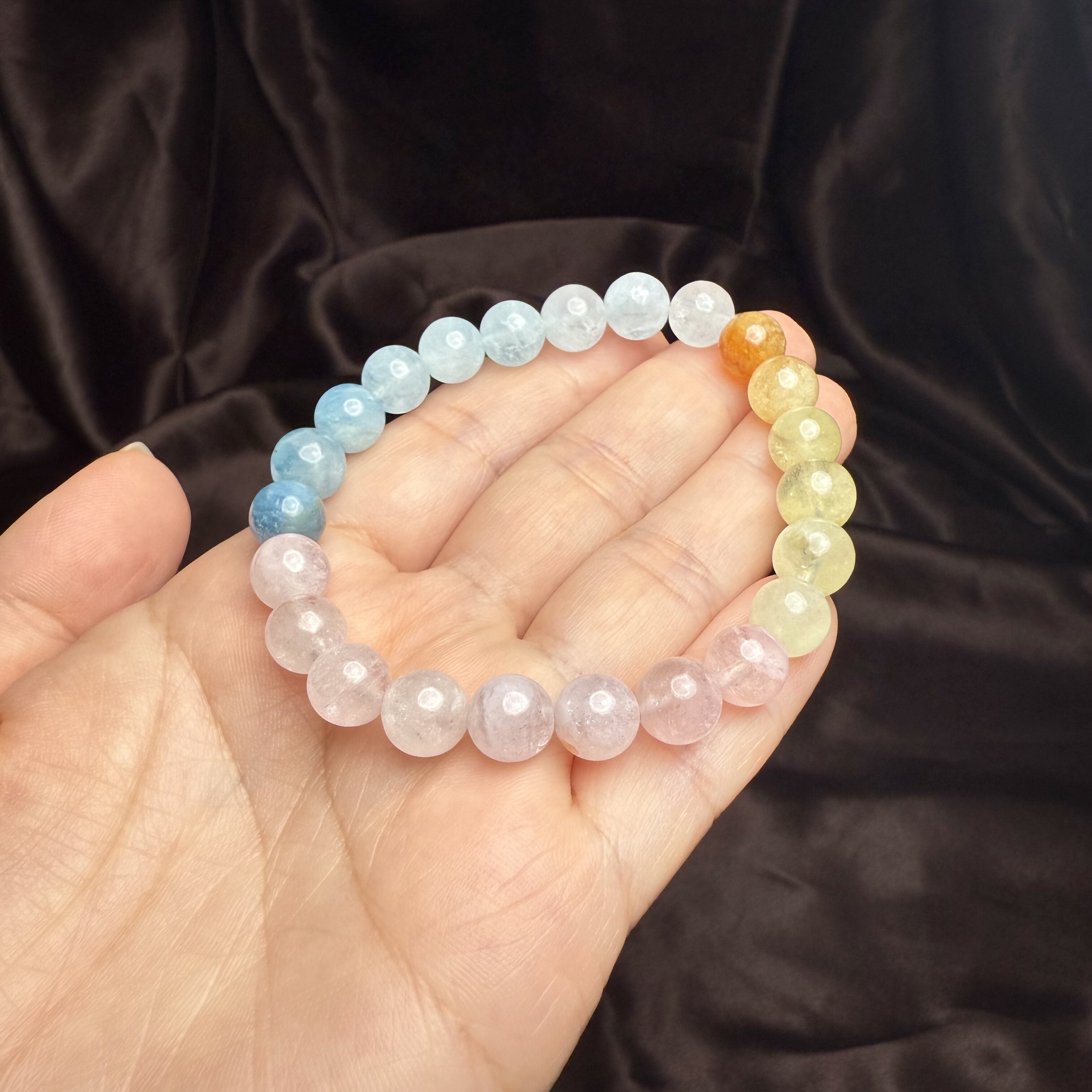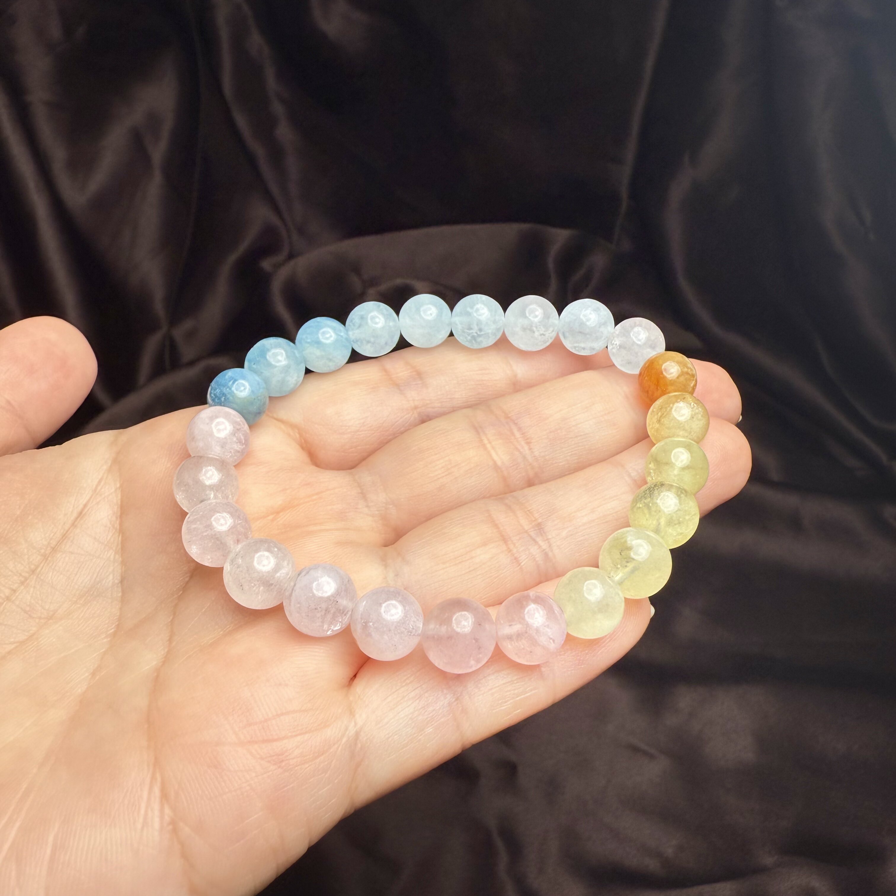 📚 H713绿柱石摩根石圆珠彩色宝石手串珠串8mm超值粉黄蓝手链证书