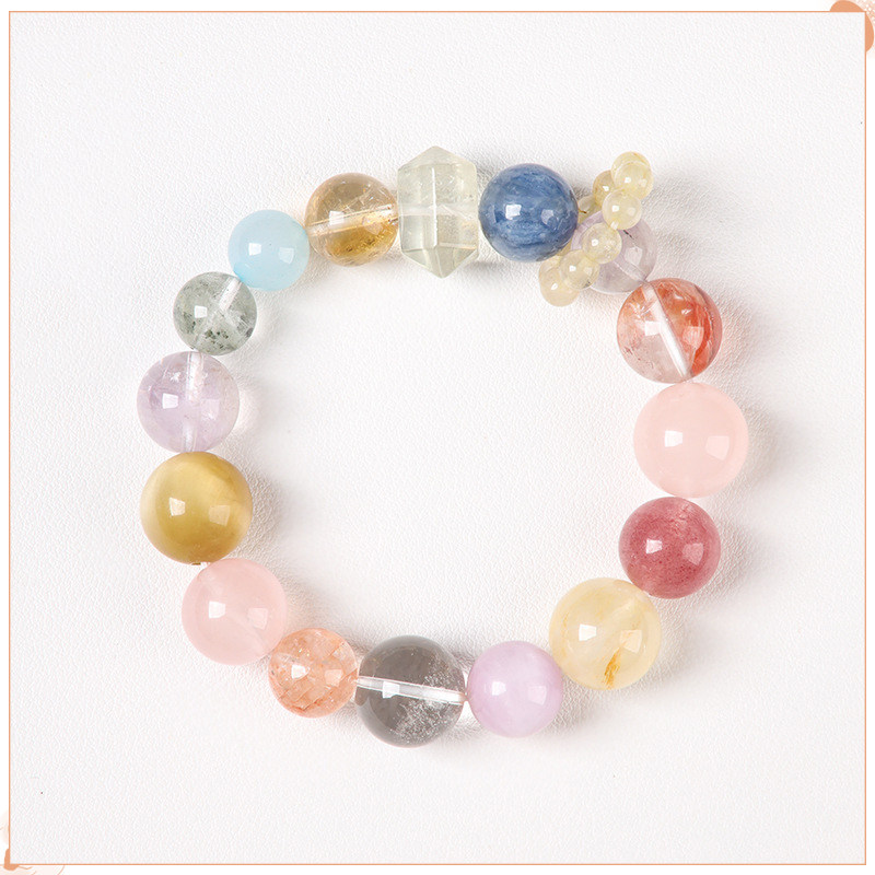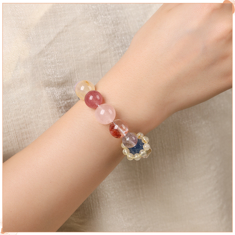 📚 清新甜美多宝色天然石粉黄水晶手串古风简约福运桃花手链单圈新款