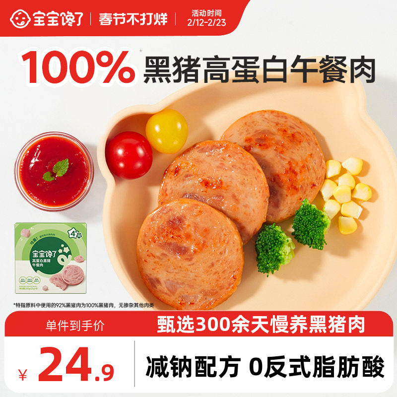 📚 宝宝馋了黑猪午餐肉儿童零食无添加香精送宝宝一岁以上婴儿辅食谱