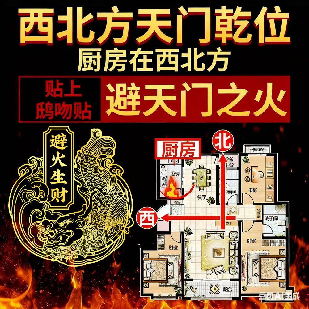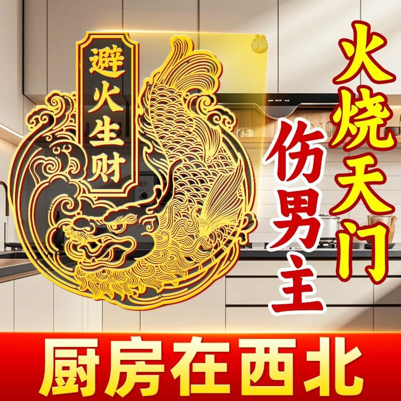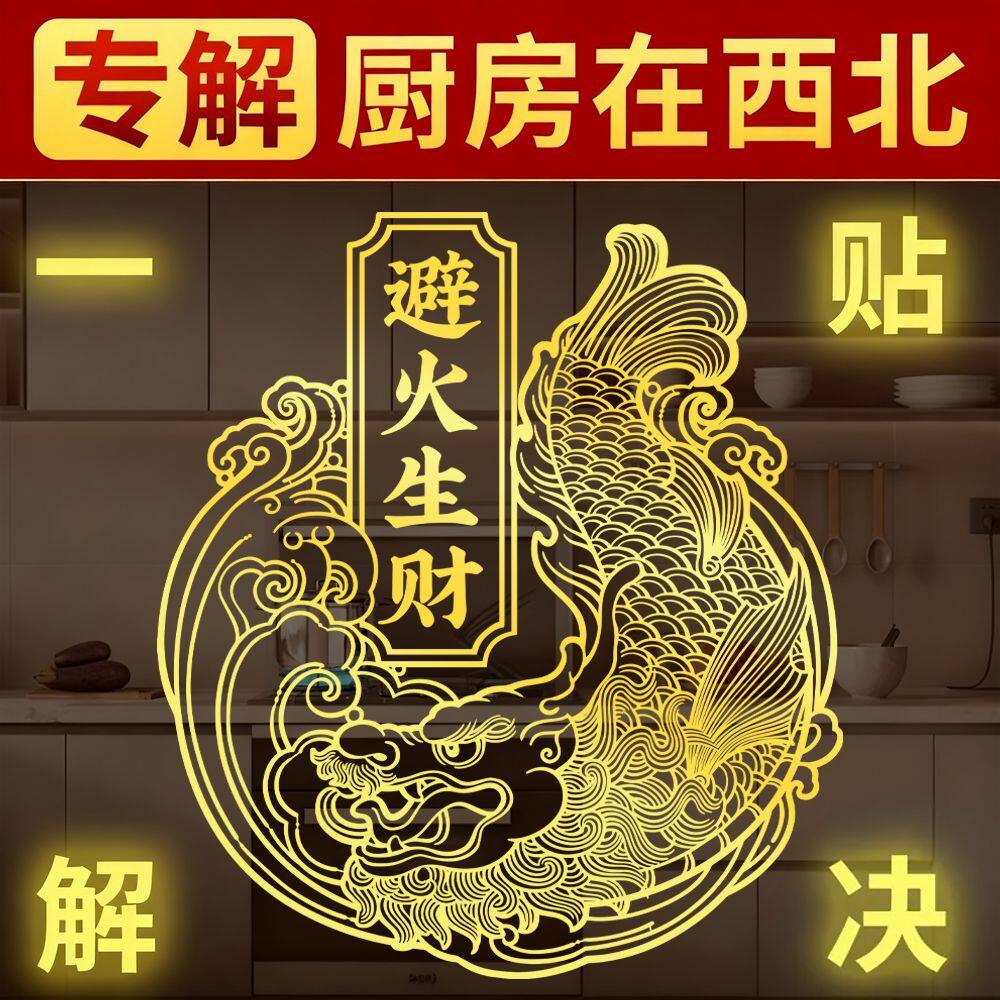 📚 解决厨房在西北避火罐金属贴鸱吻门贴辟火生财贴纸挂饰灶台开门