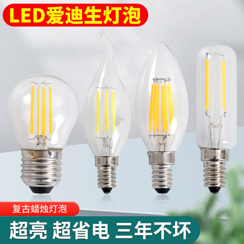📚 led灯泡钨丝爱迪生E14小螺口蜡烛灯泡4W6W尖泡拉尾水晶吊灯ST64泡