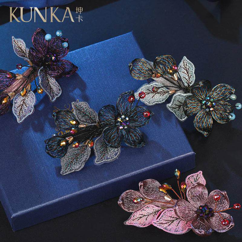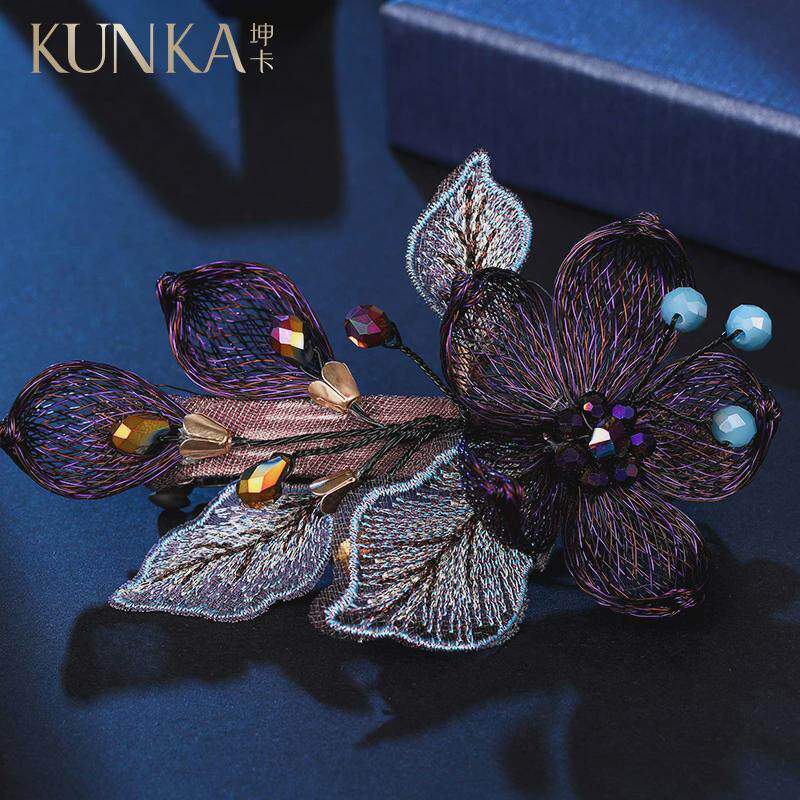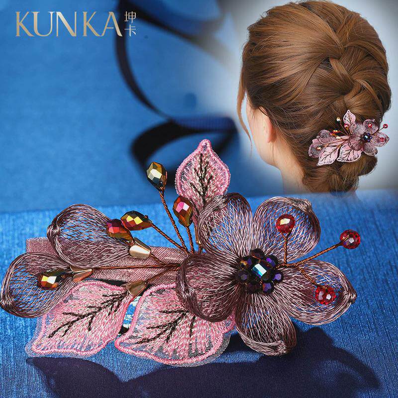 📚 金属发夹盘发顶夹子头饰妈妈优雅气质弹簧横夹花朵带钻后脑勺发卡