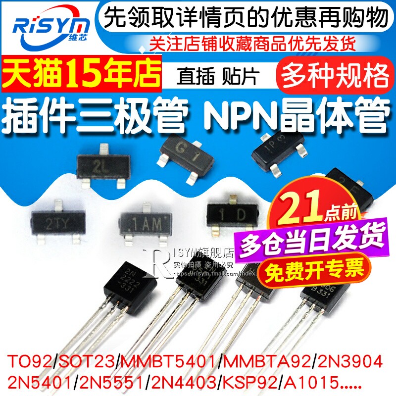 📚 三极管MMBT5401 MMBTA92 2N3904 A1015 NPN大电流 印字2L 晶体管