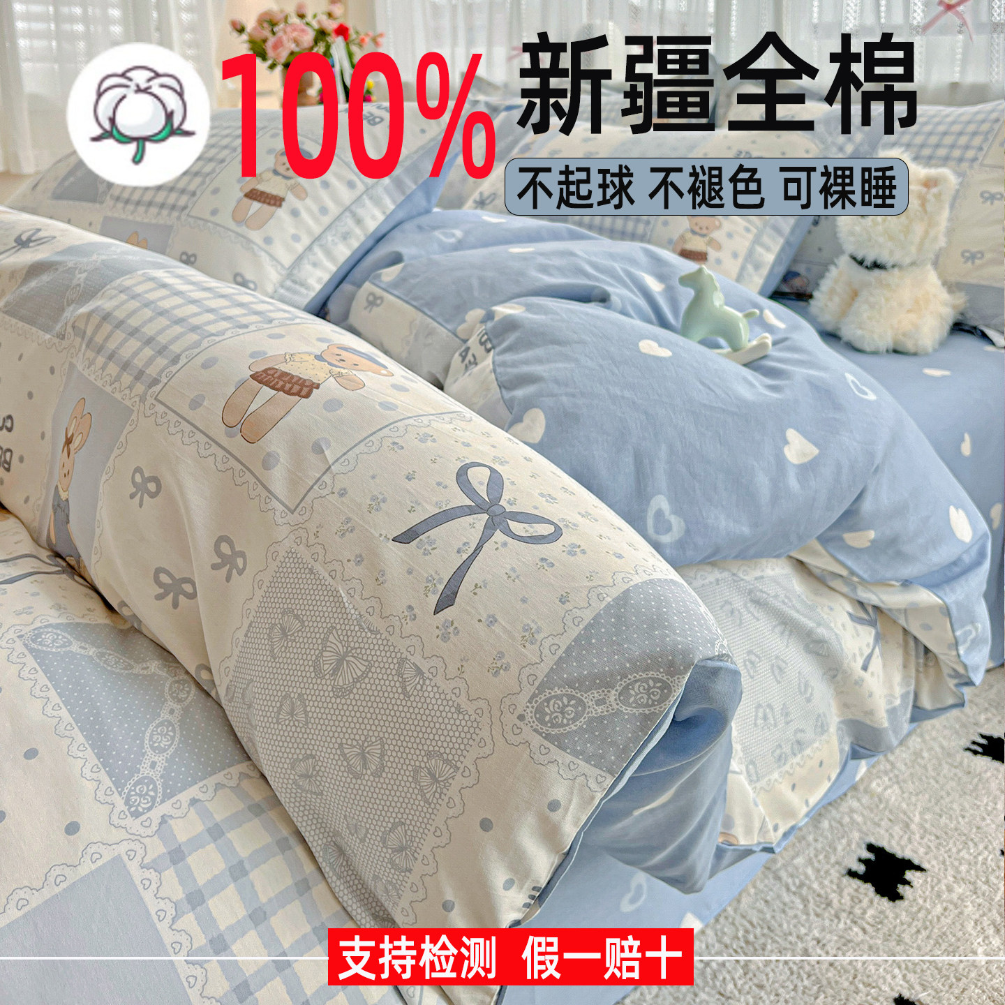📚 100%纯棉被套单件150x180x200x230cm全棉被罩学生宿舍1.5米褥子套