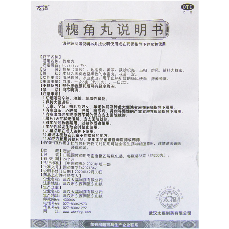 📚 太福 槐角丸 200丸 清肠疏风凉血止血血热所致的肠风便血痔疮肿痛