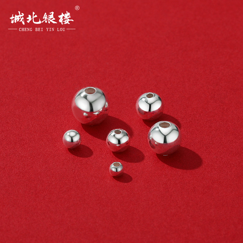 📚 城北银楼足银S999银珠光面珠子圆珠散珠串珠手工DIY手链纯银配件