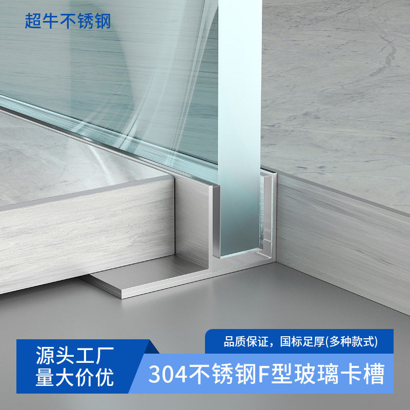 📚 304不锈钢F型凹槽玻璃卡槽下沉式淋浴房卫生间预埋瓷砖收口收边条