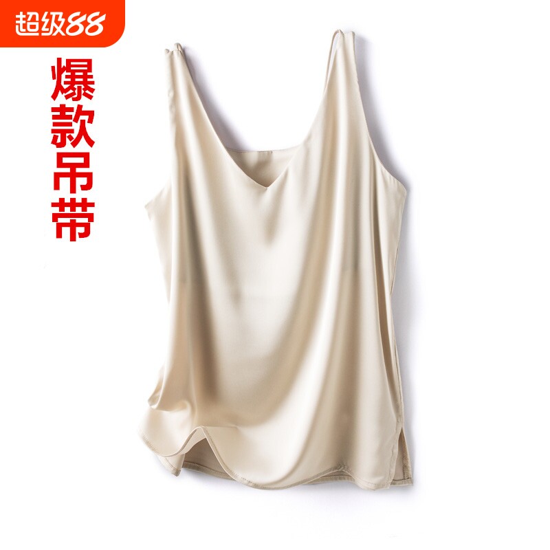📚 夏季吊带背心女内搭缎面新款西装真丝白色醋酸桑蚕丝V领大码上衣