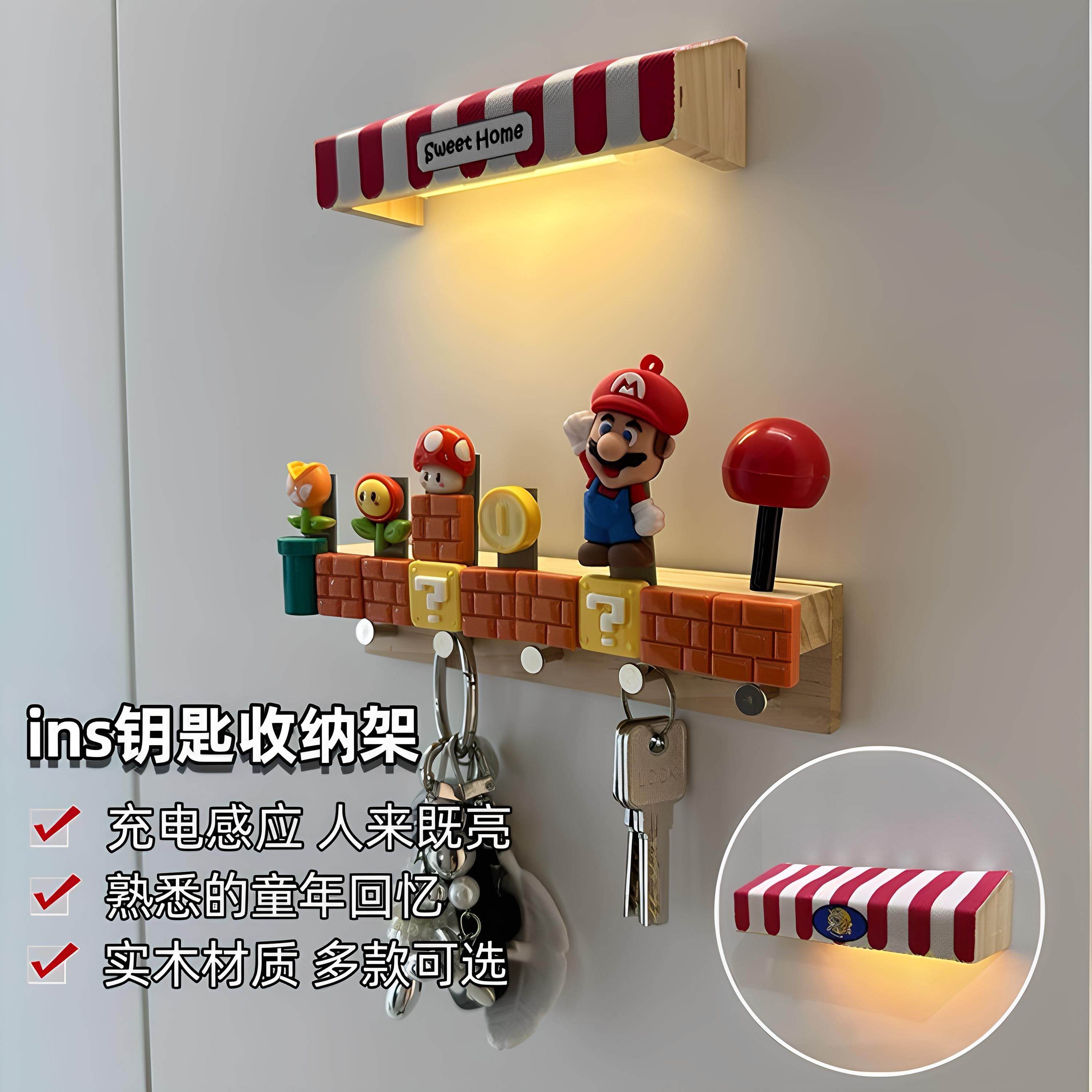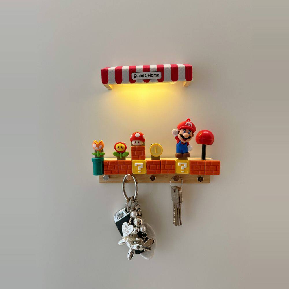 📚 卡通玛利欧挂钩入户进门钥匙收纳免打孔挂衣架门后玄关黏钩置物架