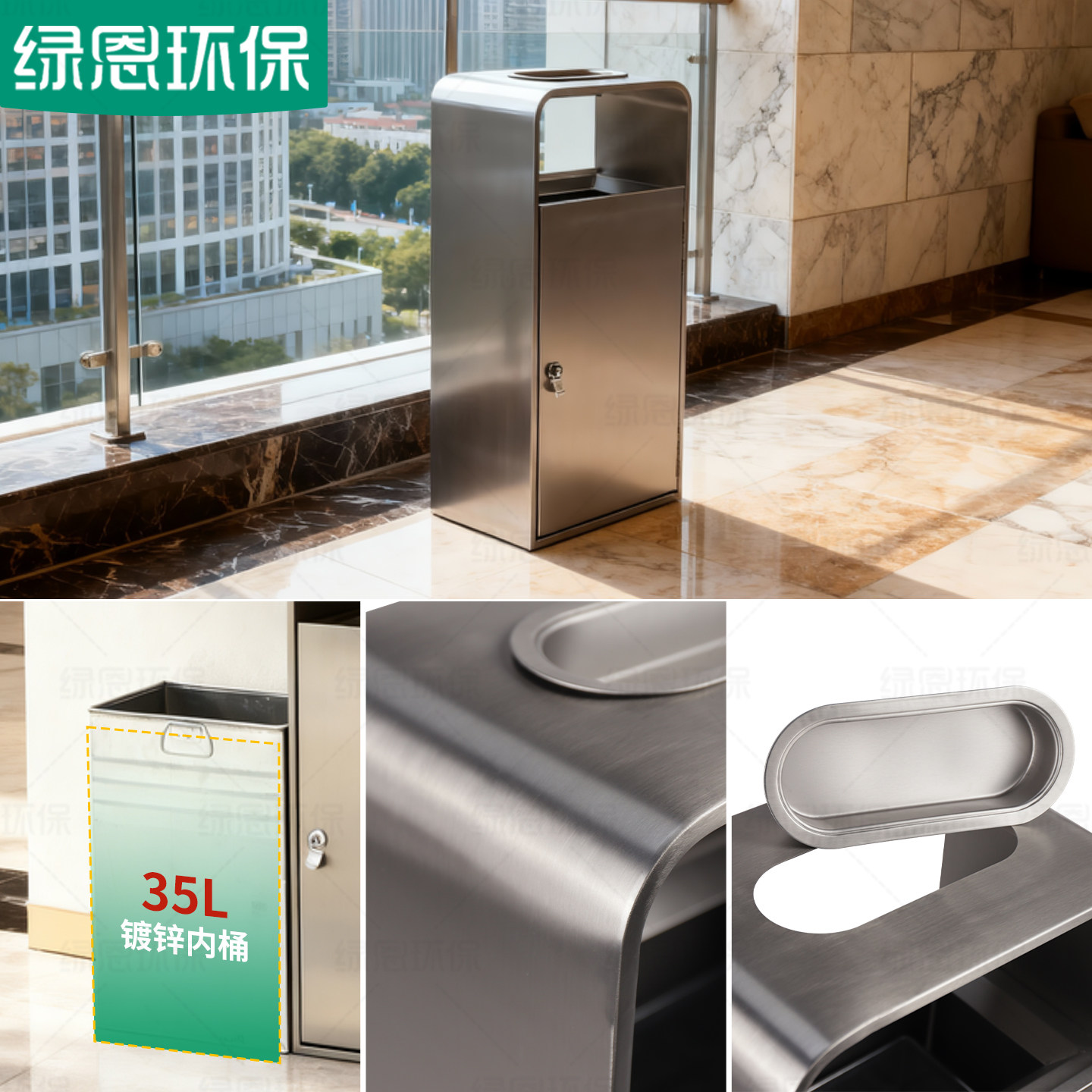 📚 绿恩室内商用垃圾桶商场写字楼不锈钢果皮箱酒店电梯口立式灭烟桶