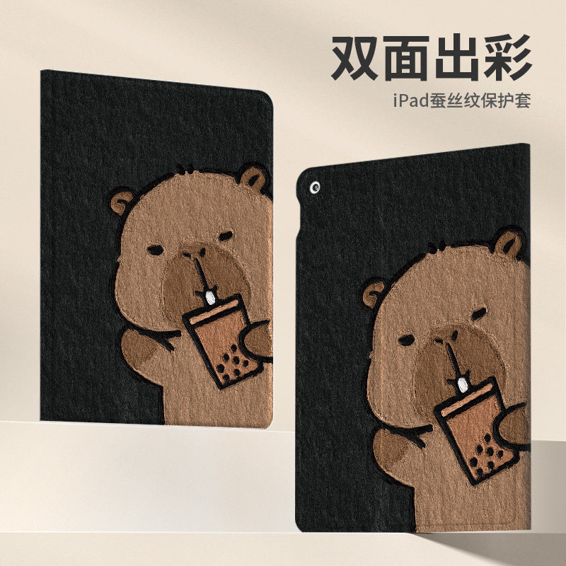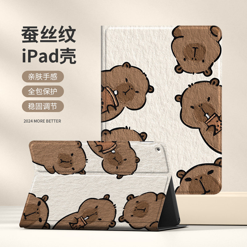 📚 卡皮巴拉适用ipad保护套10.9寸11/12.9寸新款情侣小众趣味mini6平板壳第十代pro带笔槽8.3寸水豚mini5透明软