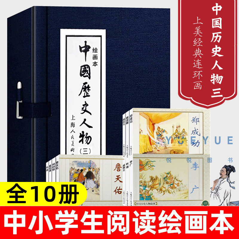 📚 函装蓝皮书 中国历史人物三绘画本全10册 连环画小人书老版怀旧经典收藏版郑成功戚继光林则徐英雄人物故事书籍上海人民美术出版社