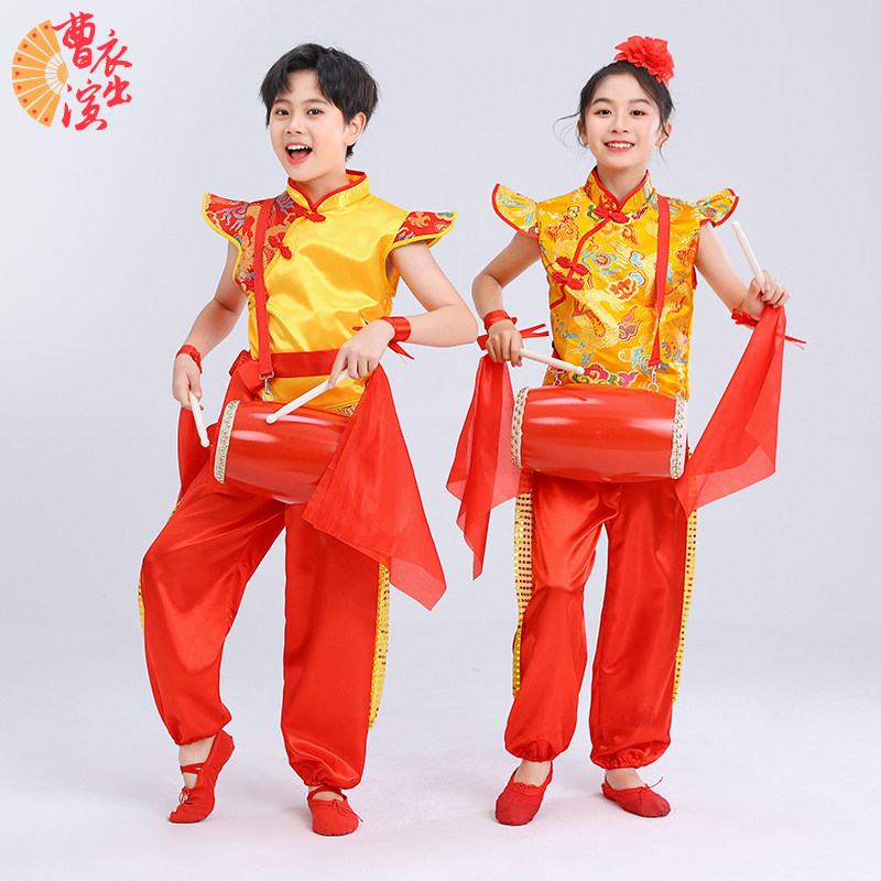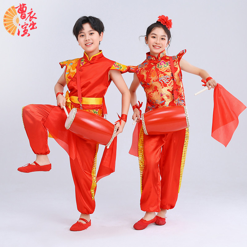📚 儿童喜庆打鼓服亮片腰鼓队演出服舞龙舞狮武术服击鼓赛龙舟表演服