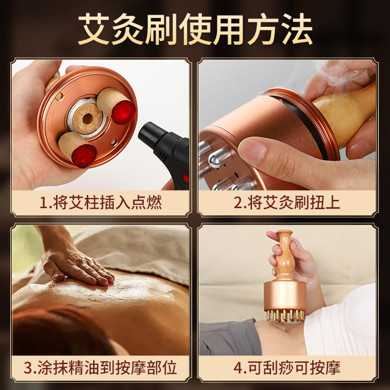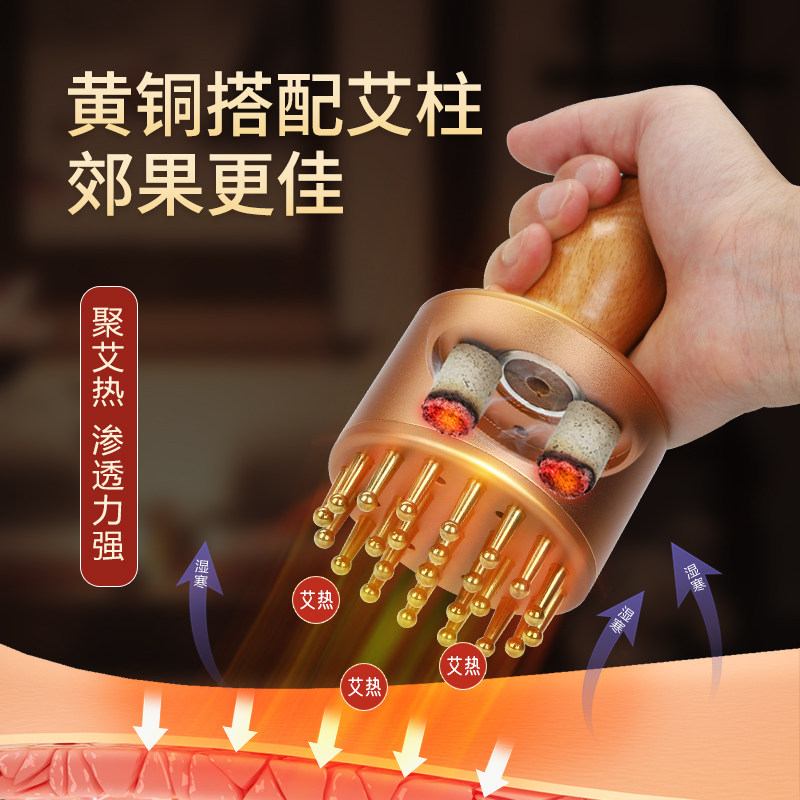 📚 丰林纯黄铜艾灸经络刷燃脂肪揉腹肝胆推拿随身按摩艾灸刮痧一体罐