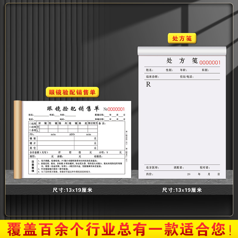 📚 【眼镜店专用】眼镜店销售单二联定制手写验光处方单据三联配镜收款收据2联开票开单本近视眼票据问诊订单本