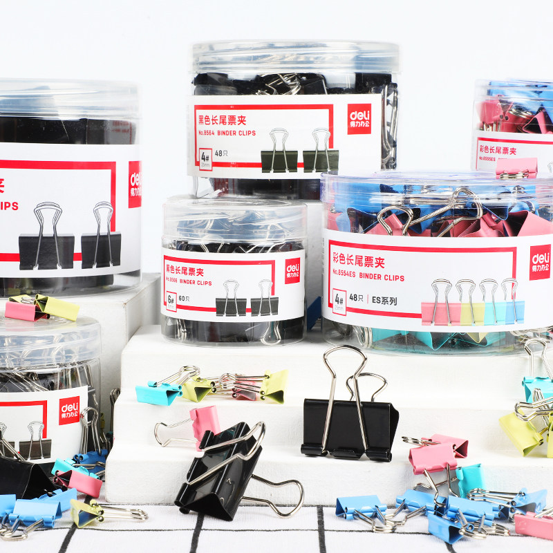 📚 得力长尾夹大号文件夹子彩色文具燕尾夹中号混装小夹子小号铁票夹票据金属试卷书夹子凤尾夹混办公用品多功能