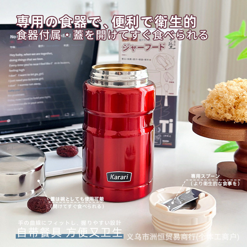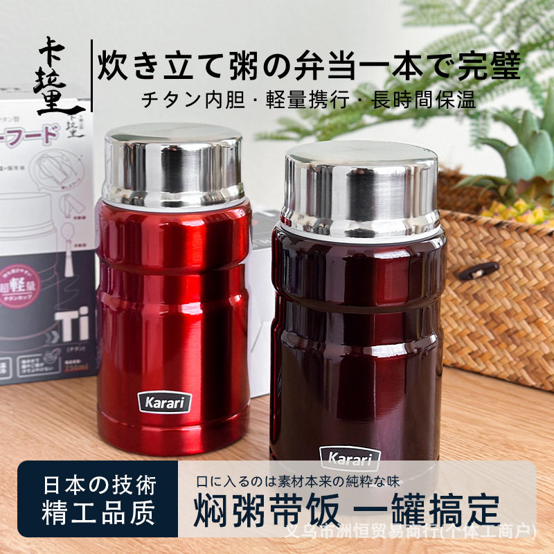 📚 日本卡拉里钛内胆焖烧杯大口径保温杯上班带饭焖粥便当饭盒焖烧