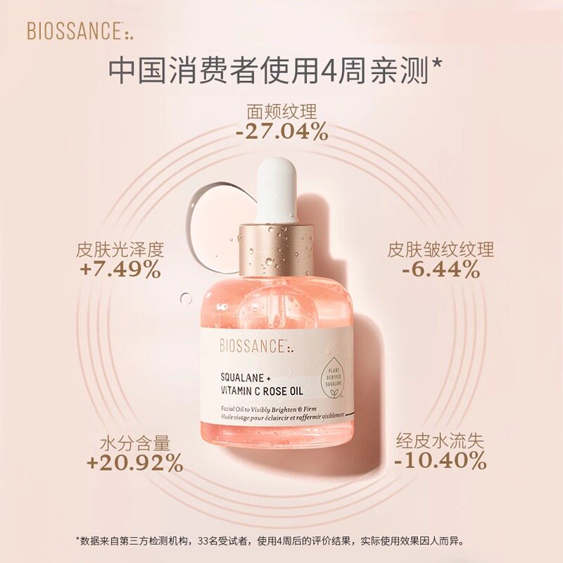 📚 美国BIOSSANCE角鲨烷VC玫瑰精华粉晶油高配精华水润光泽提亮肤色
