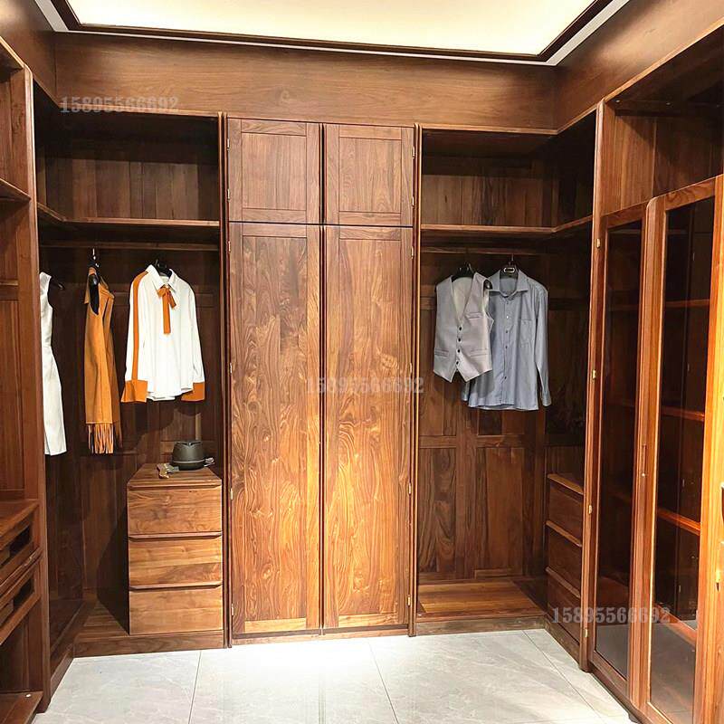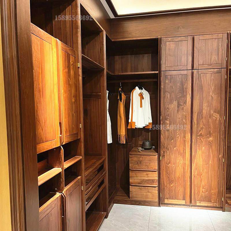 📚 全屋定制衣柜子整体一门到顶实原木风宋式美学新中卧室黑胡桃书柜