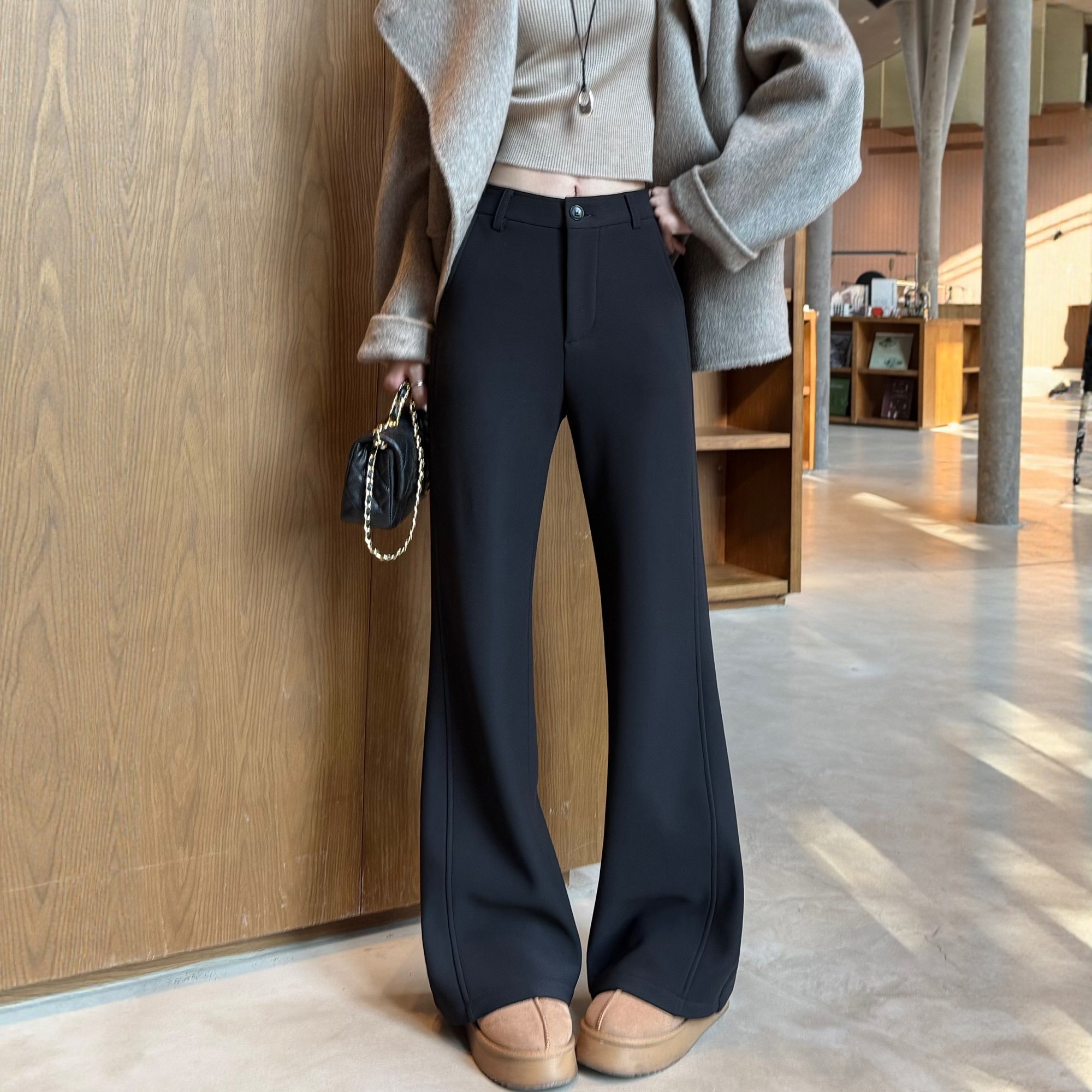 💥微喇裤女冬加绒加厚黑色西装裤,松弛感爆棚,券后价仅181元!超模裤的魅力💖