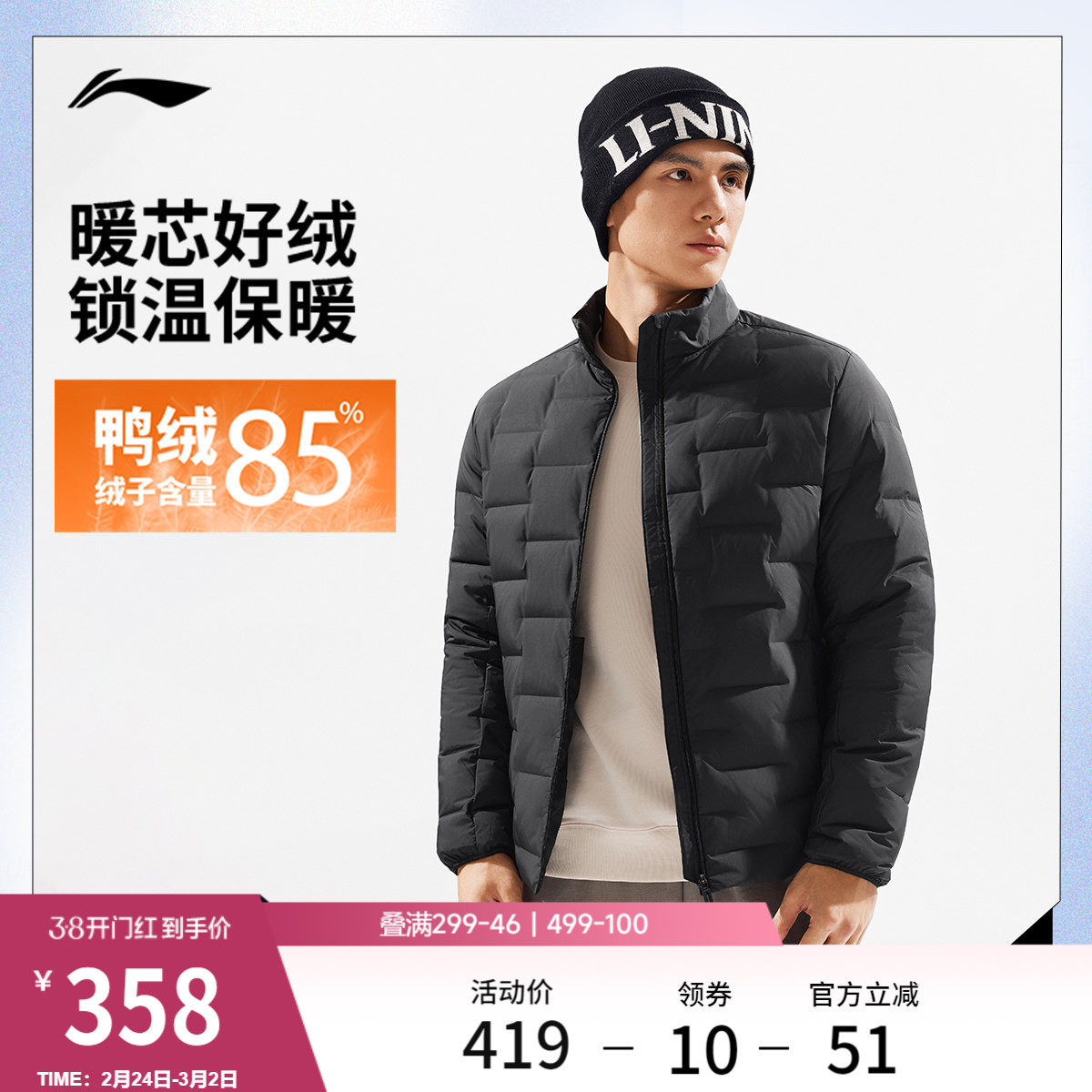 📚 李宁短款羽绒服男士官方新款健身系列立领修身外套冬季鸭绒运动服