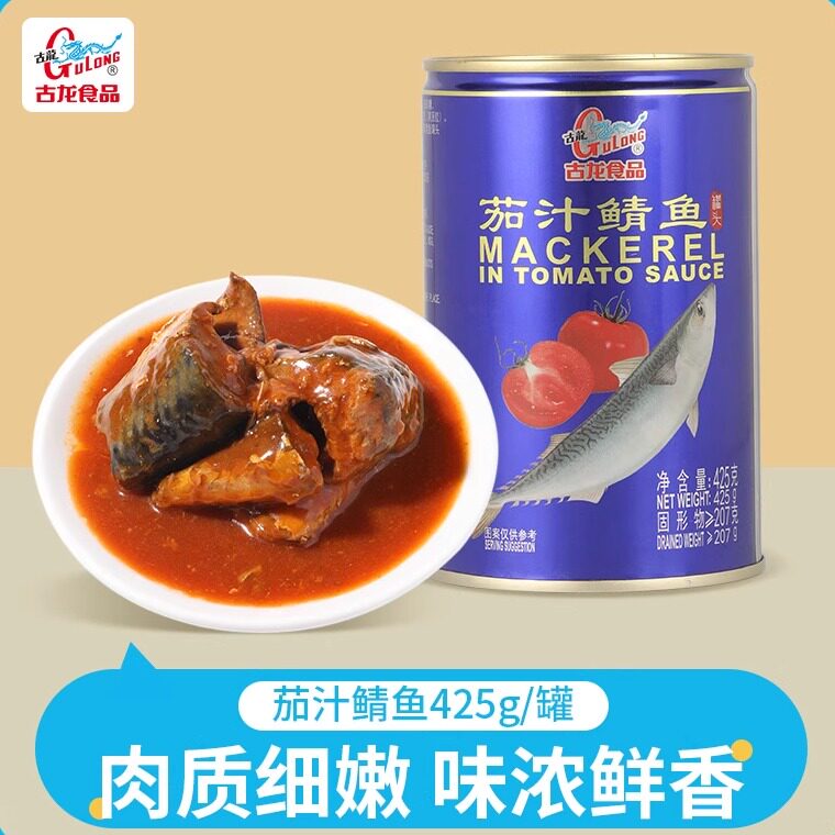 📚 古龙食品茄汁鲭鱼罐头特产小吃海鲜下饭拌饭海味即食熟食凉菜425g