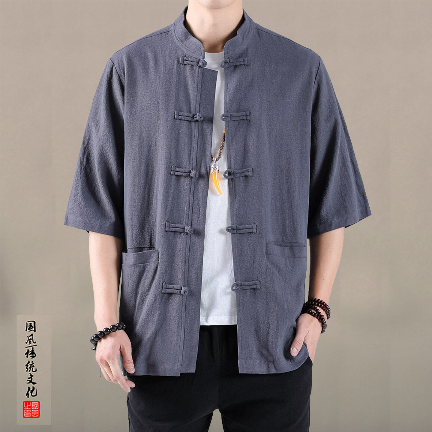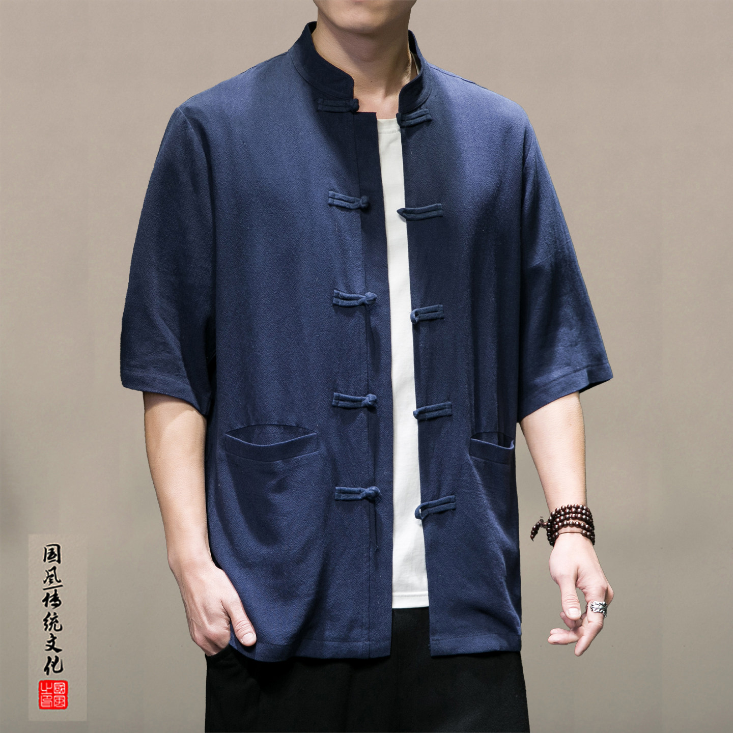 👕夏日新宠,亚麻衬衫男短袖登场!这款中式唐装男款高端中老年男装,简直是品质生活的完美体现。一眼就被它吸引,忍不住要分享给大家!