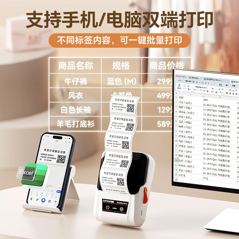 📚 硕方t50pro标签打印机服装吊牌合格证价签手持蓝牙便携不干胶贴纸二维码商用珠宝食品超市家用热敏条码标签机