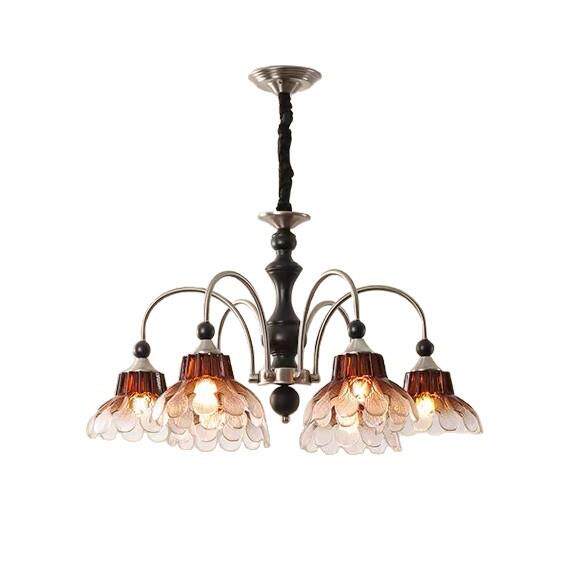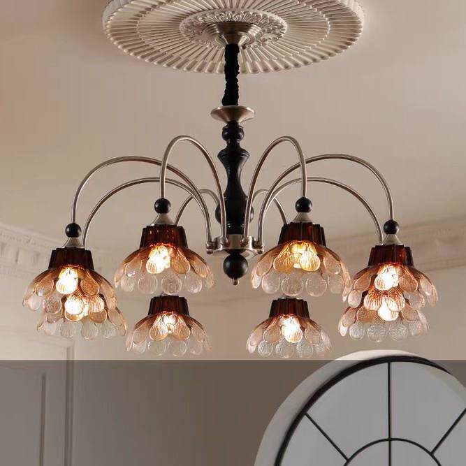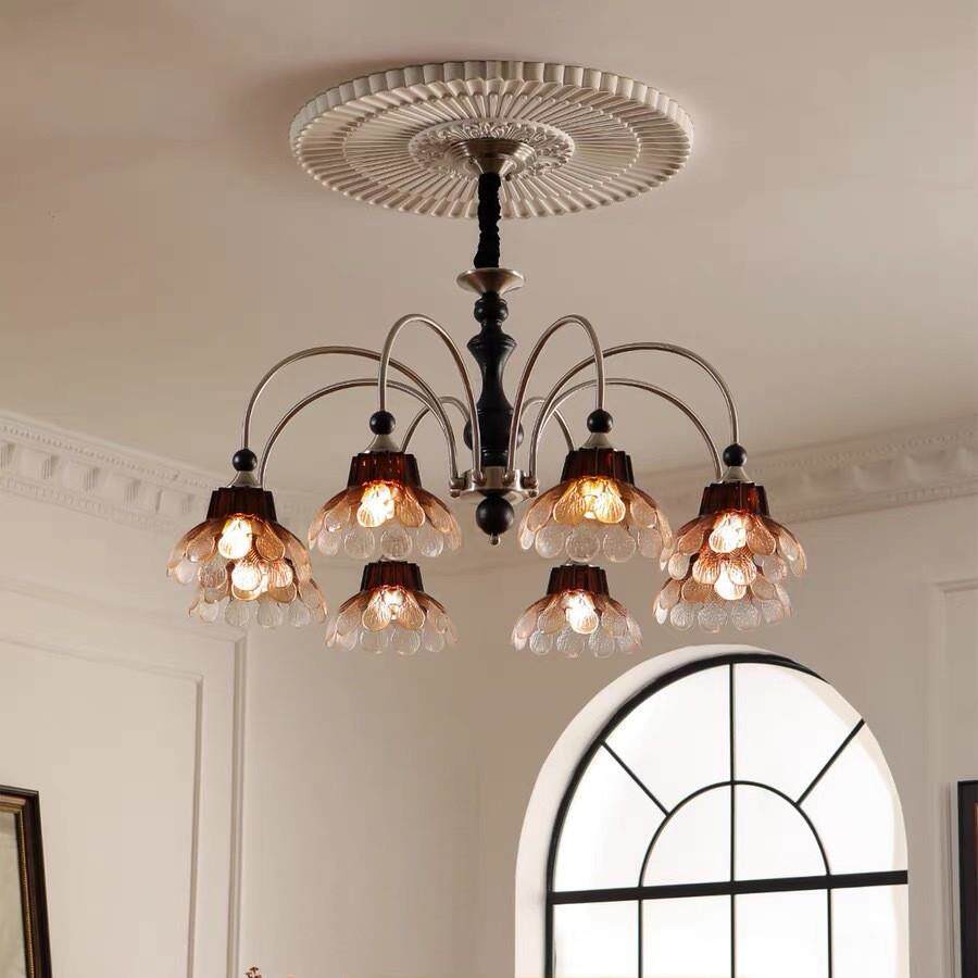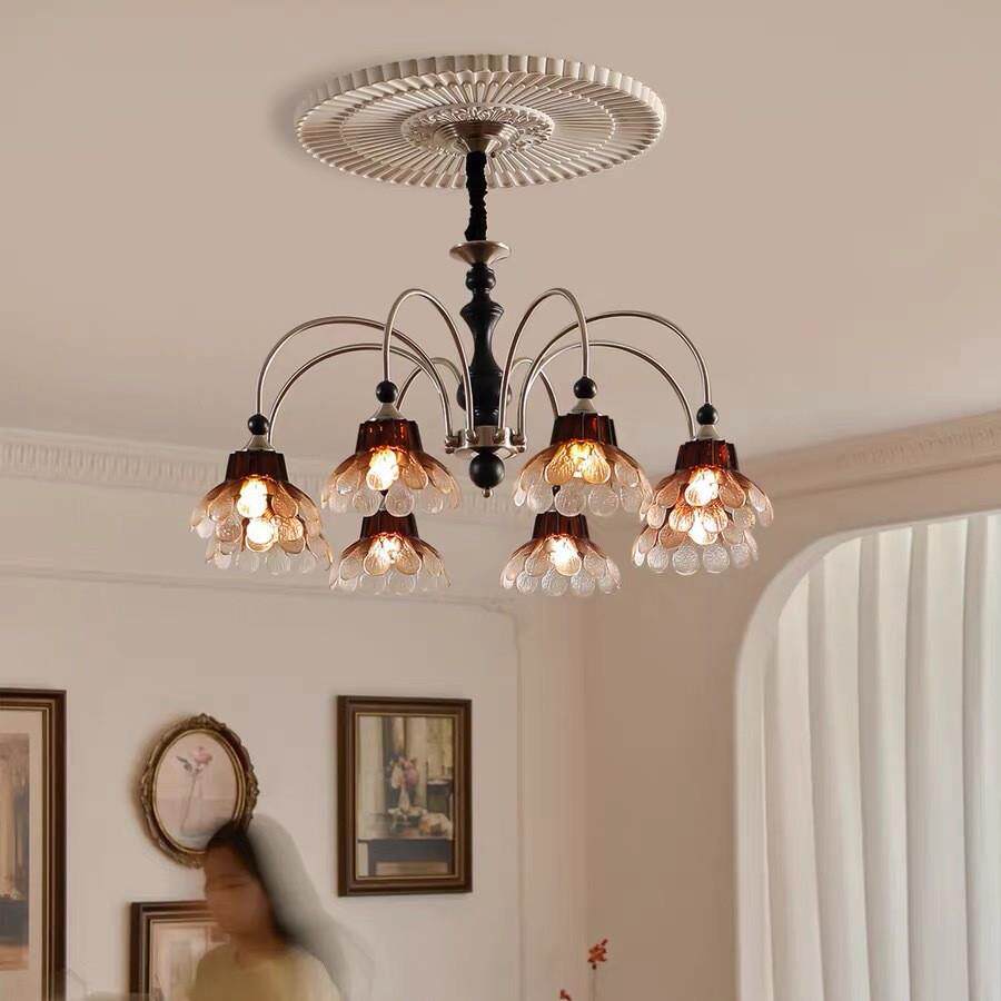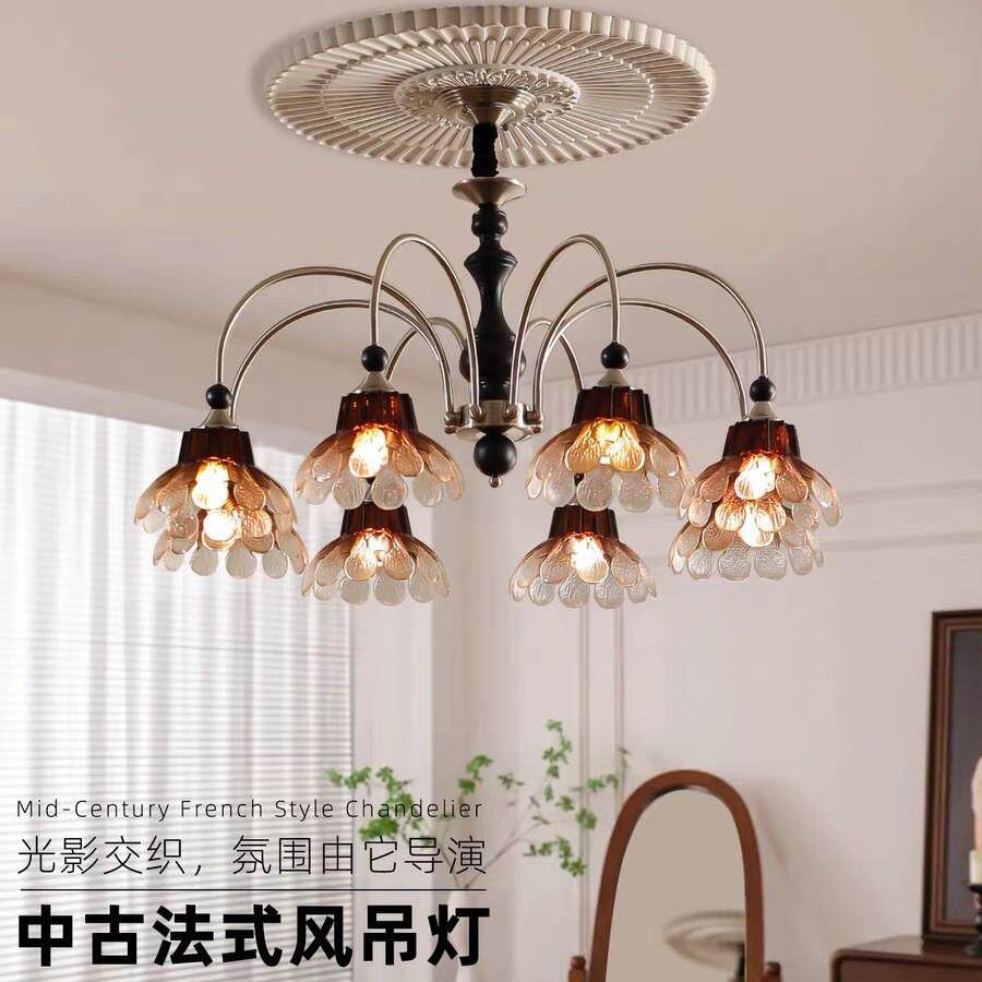 📚 法式中古风高级感客厅灯温馨浪漫美式复古琥珀色花瓣卧室餐厅吊灯