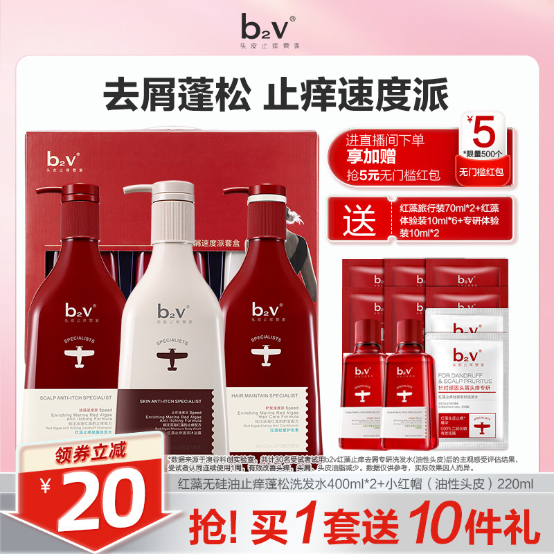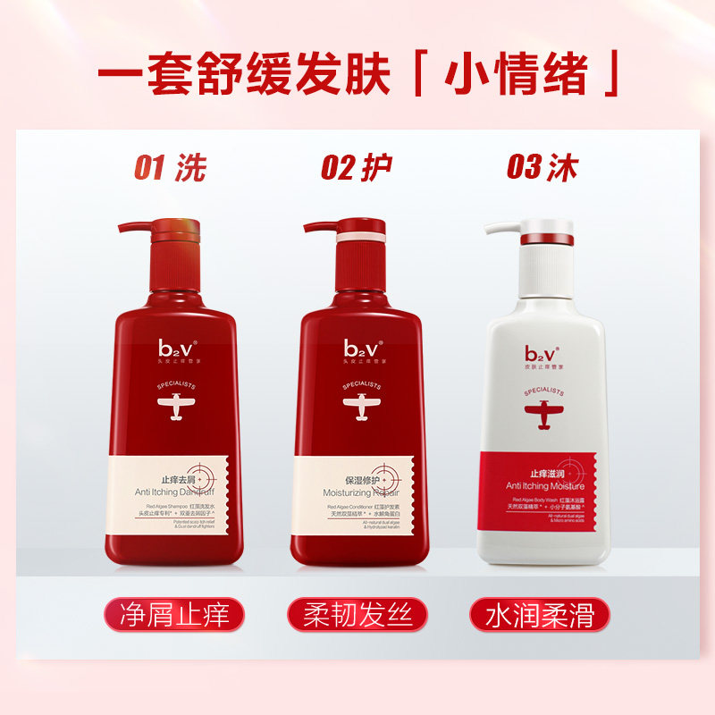 📚 b2v红藻洗发水露护发素沐浴露乳止痒去屑控油蓬松洗头膏礼盒套装