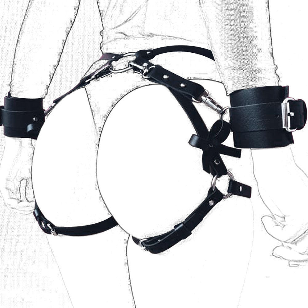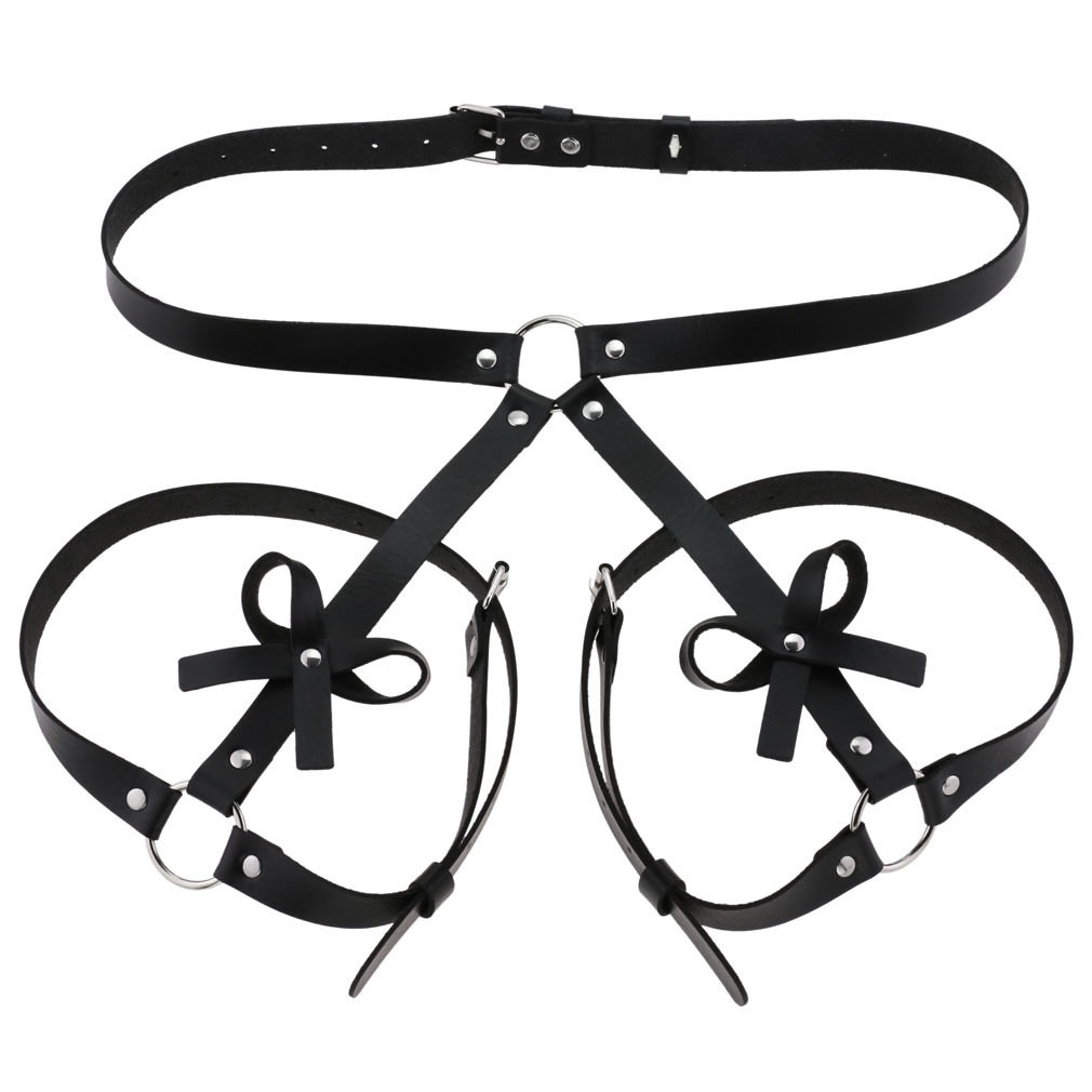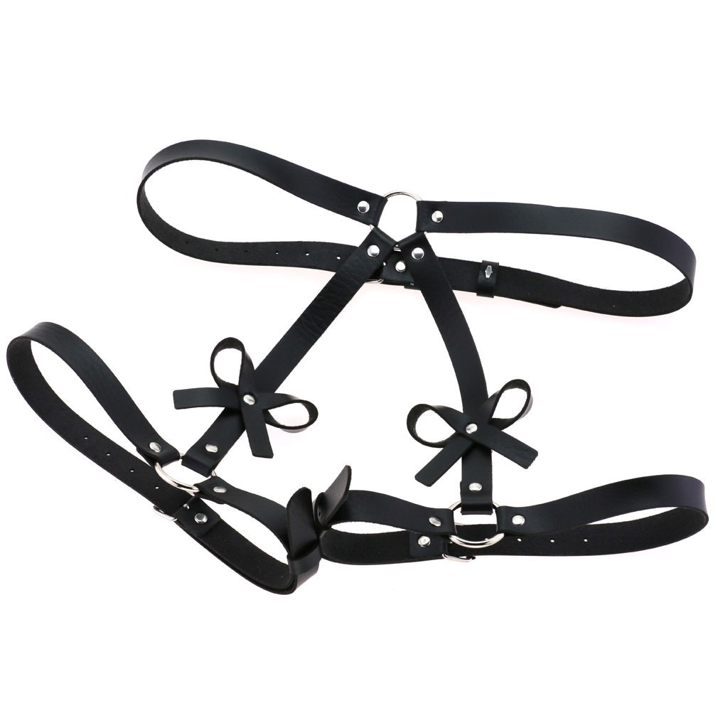📚 PU皮黑色朋克哥特束腹收腰蝴蝶结腰带腿环手圈一体 手链 性感臀带