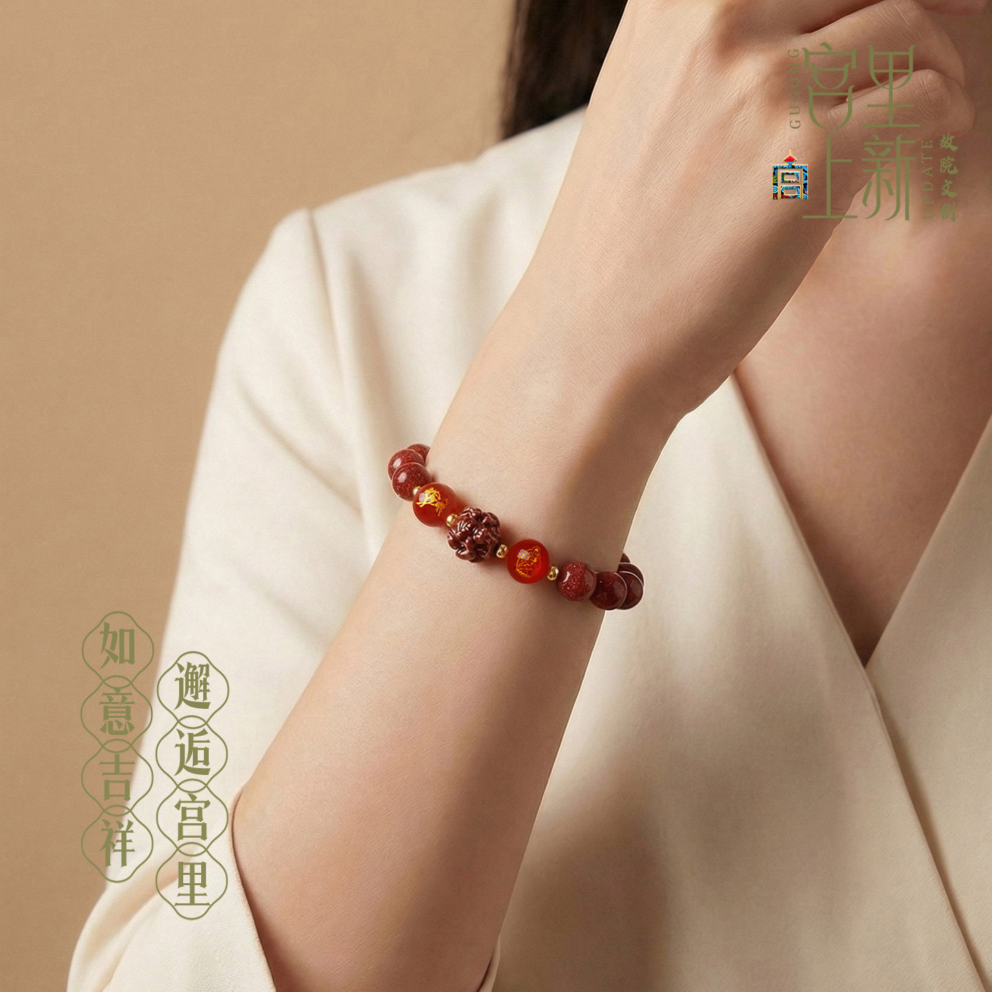 📚 宫里上新朱砂手串男红玛瑙马年手链女送妈妈三合本命年母亲节礼物