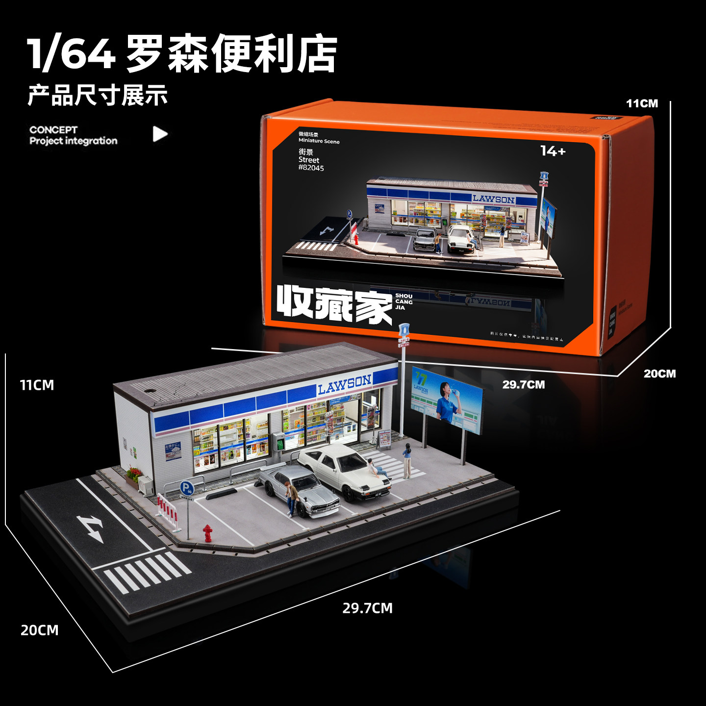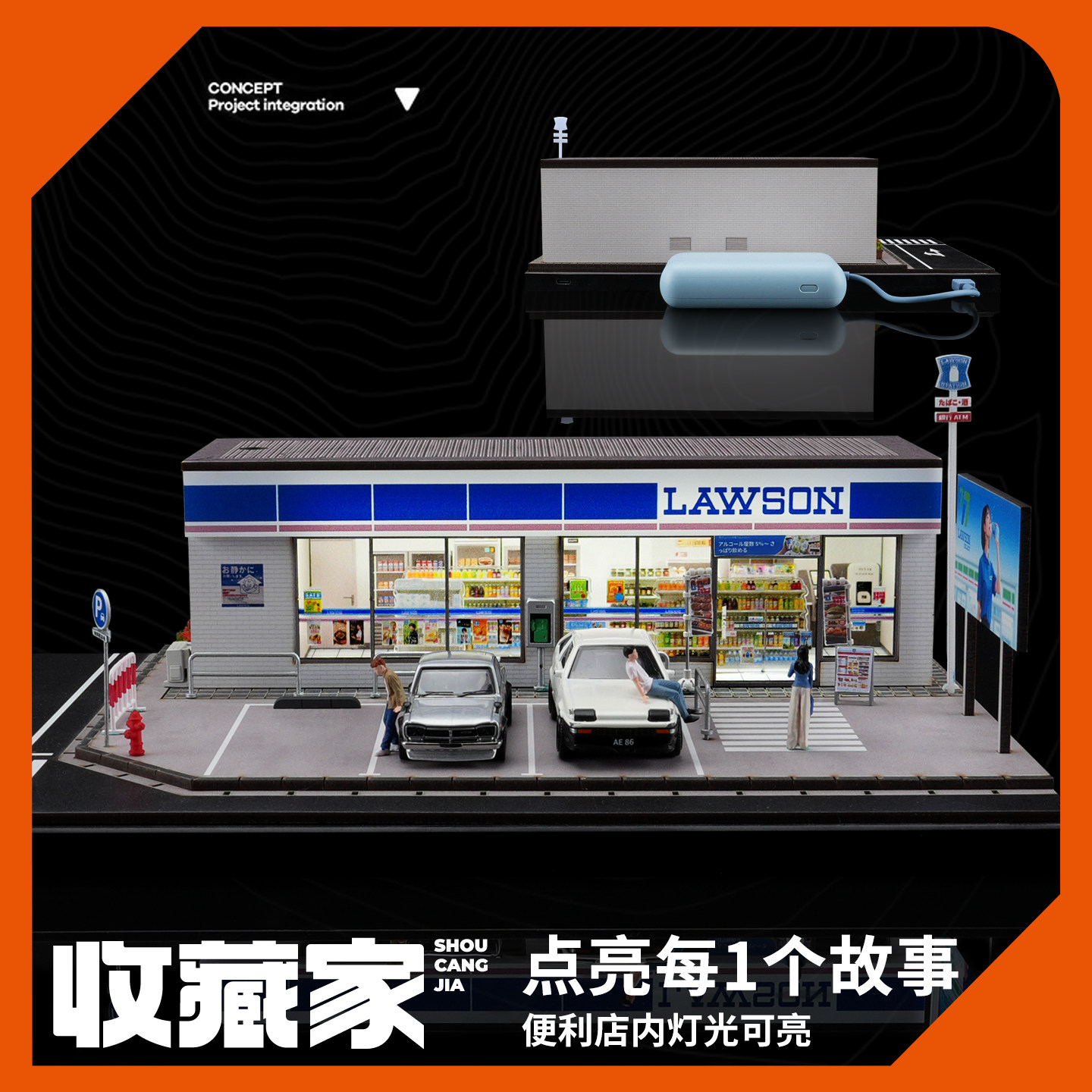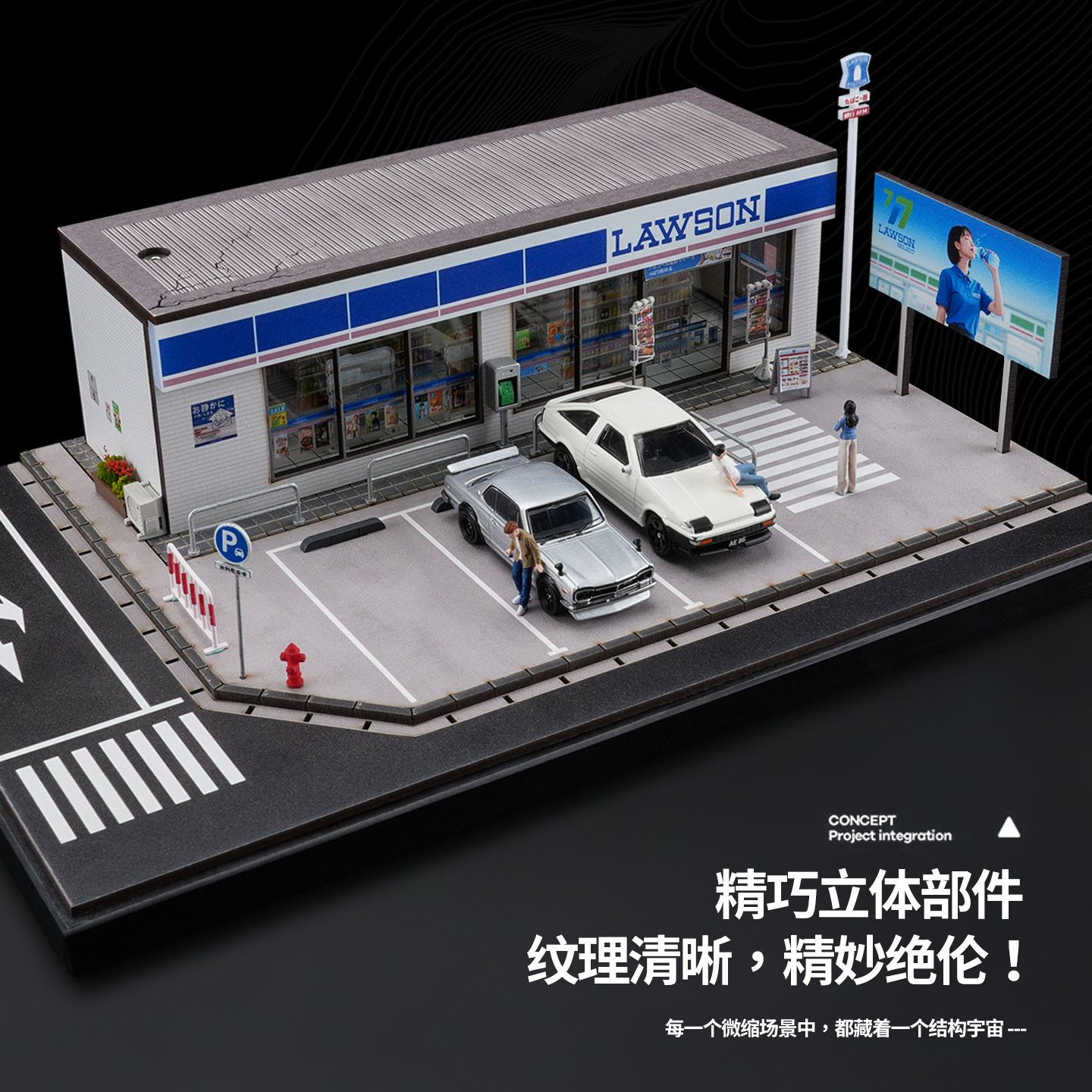 📚 收藏家1:64汽车模型收纳展示盒仿真罗森便利店微缩场景灯光版摆件