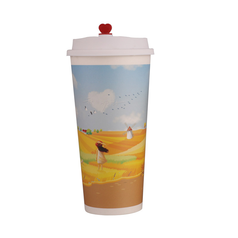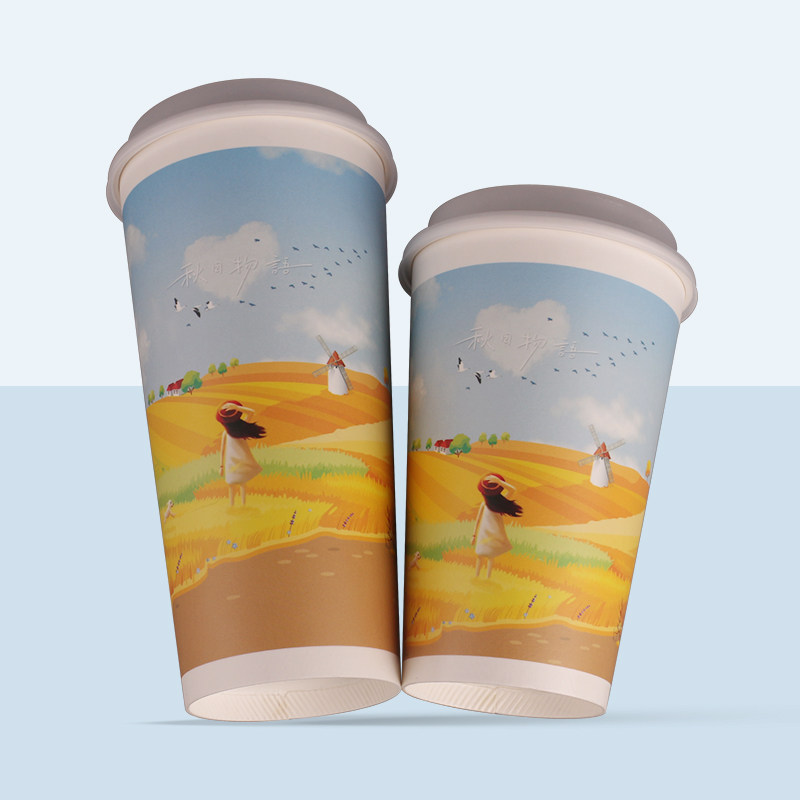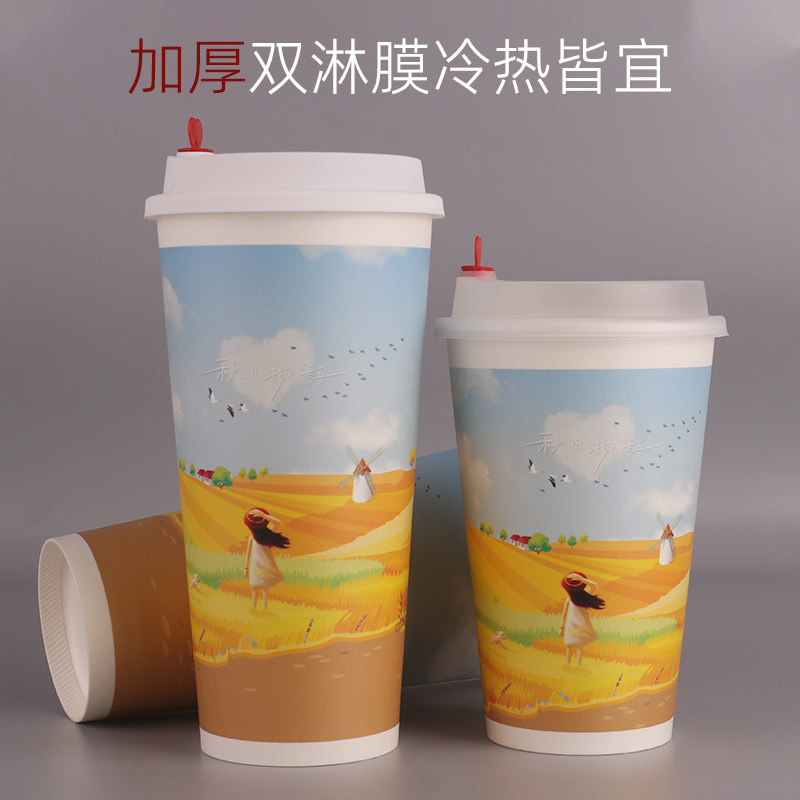 📚 90口径双淋膜奶茶纸杯700ml一次性食品级热饮杯奶茶店专用杯子500