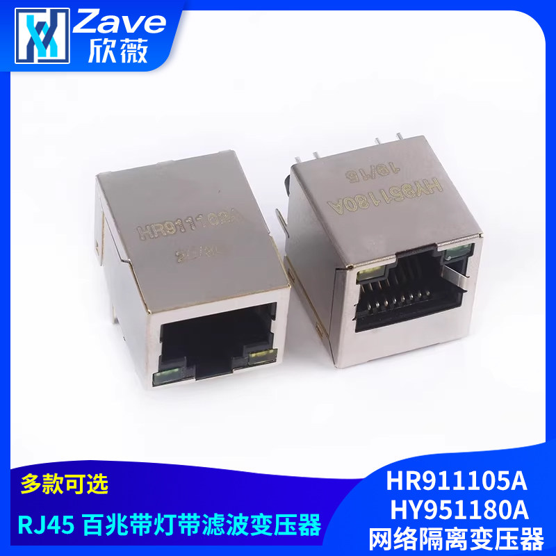 📚 HR911105A HY951180A千兆百兆网口 RJ45带LED灯 网络隔离变压器