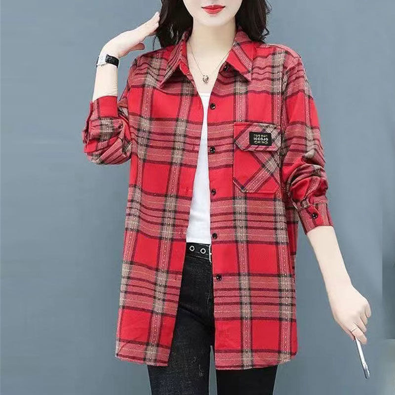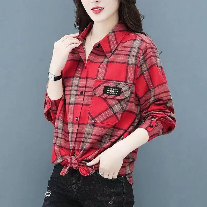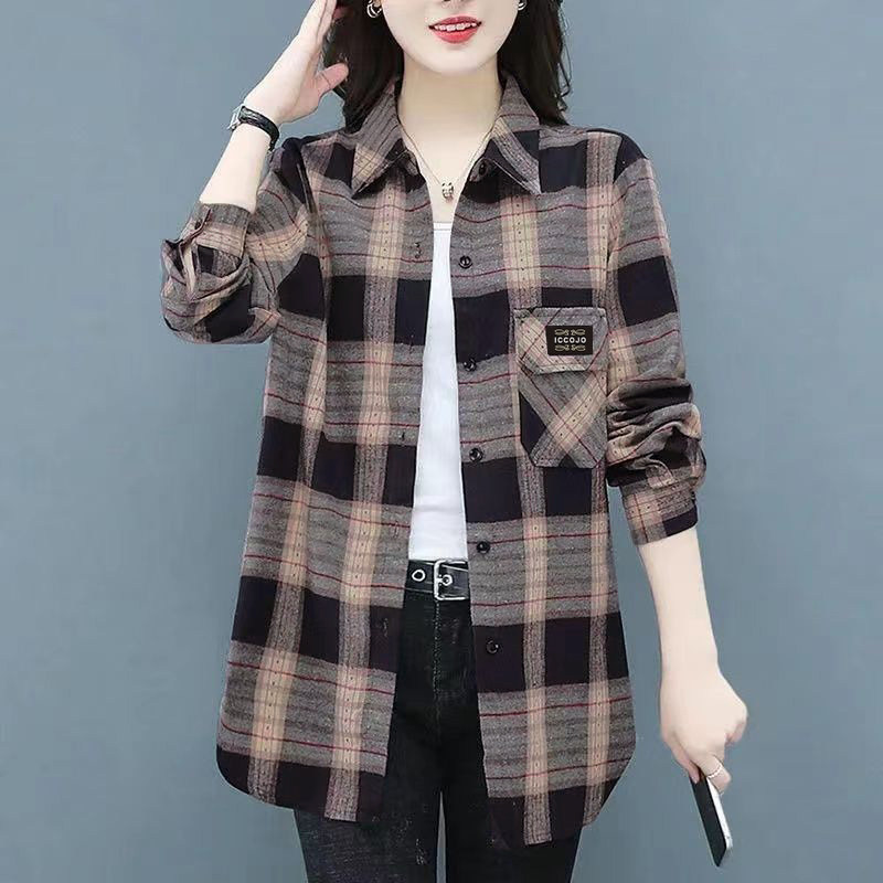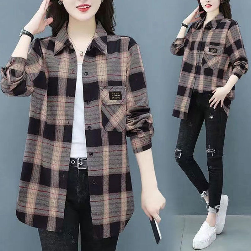 📚 2025春秋新款宽松格子衬衫女外搭百搭衬衣春装上衣外套空调防晒衫