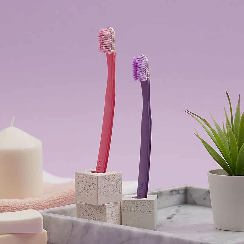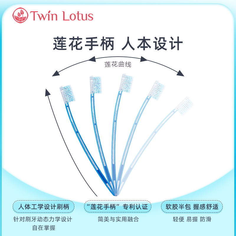 📚 泰国进口双莲曲柄中软毛硬毛牙刷易握持手感舒适呵护口腔男女牙刷