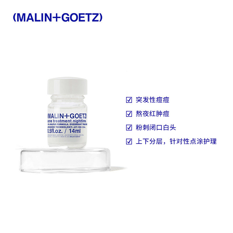📚 MALIN+GOETZ马林狗子夜间净痘精华14ML快速干瘪淡红闭口红肿痘