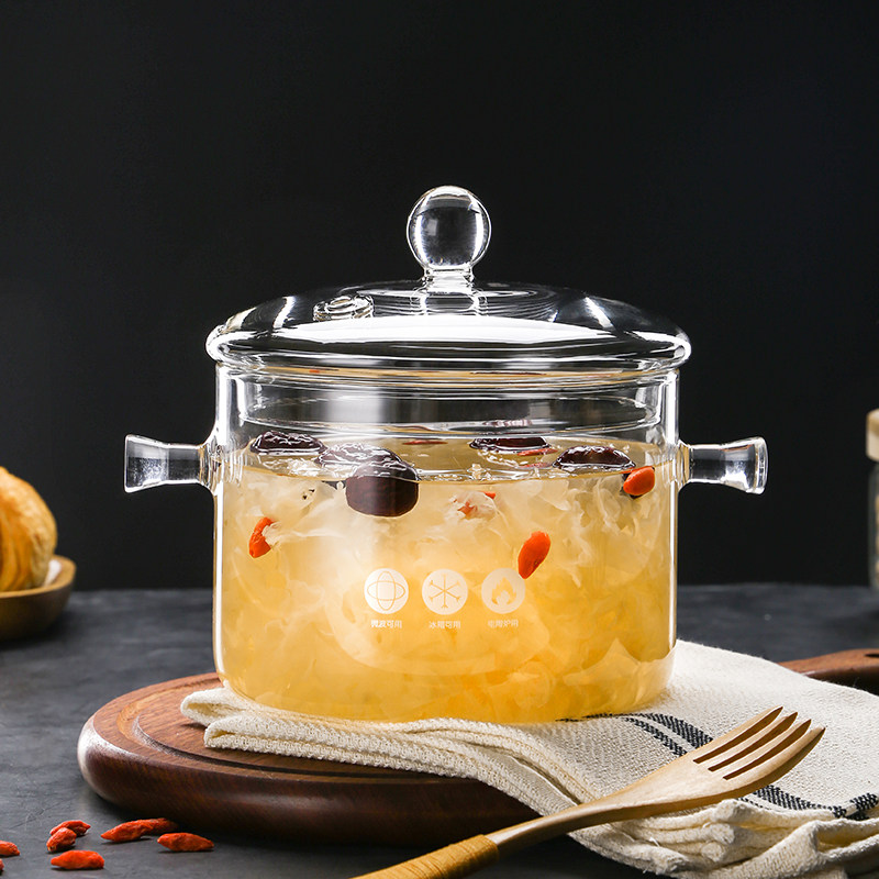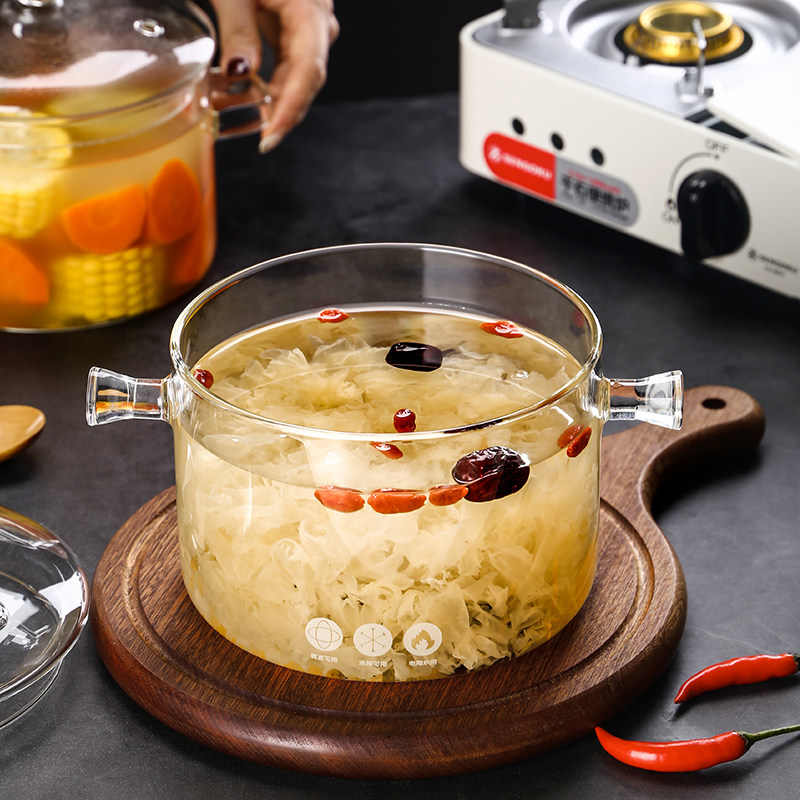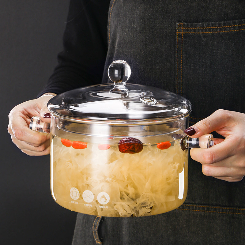 📚 高硼硅玻璃炖锅炖汤家用透明煮锅燃气明火耐高温小瓦罐迷你汤锅碗