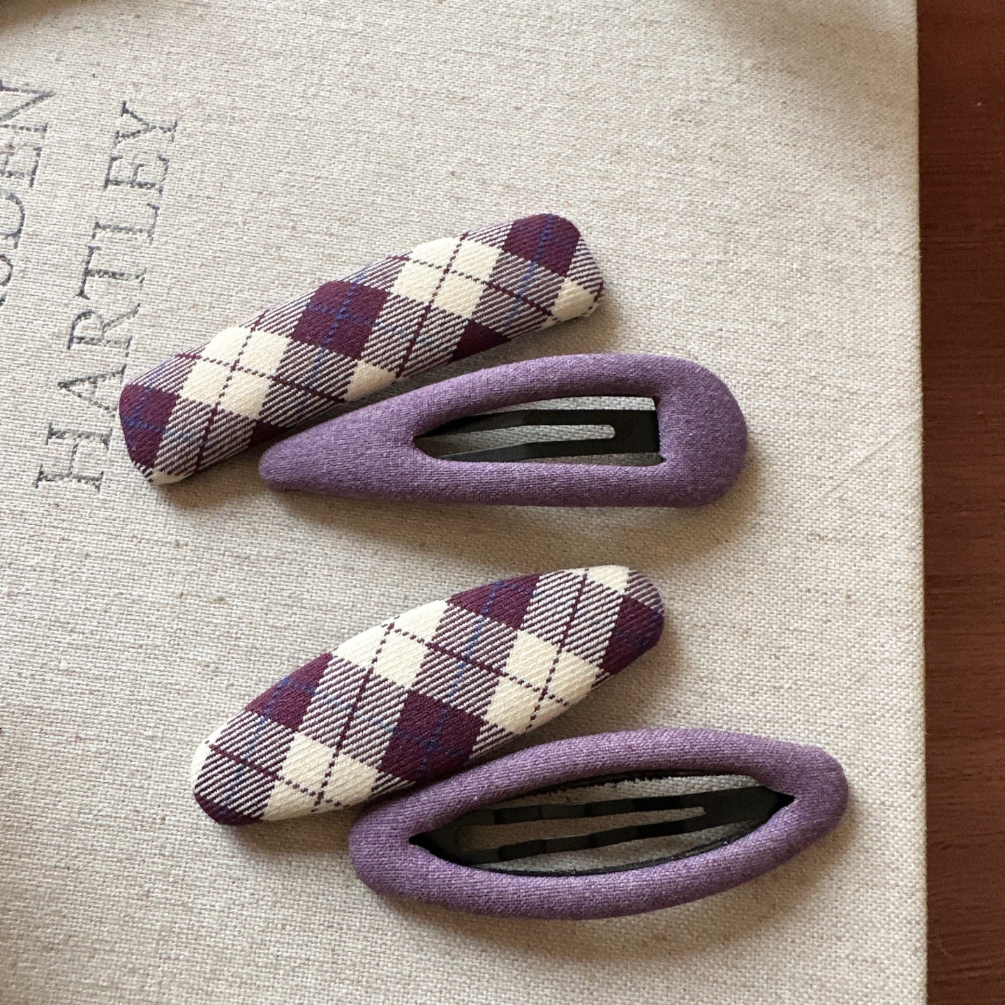 📚 韩系早春新款紫色格子布艺发夹刘海夹碎发边夹网红侧边夹bb夹发卡